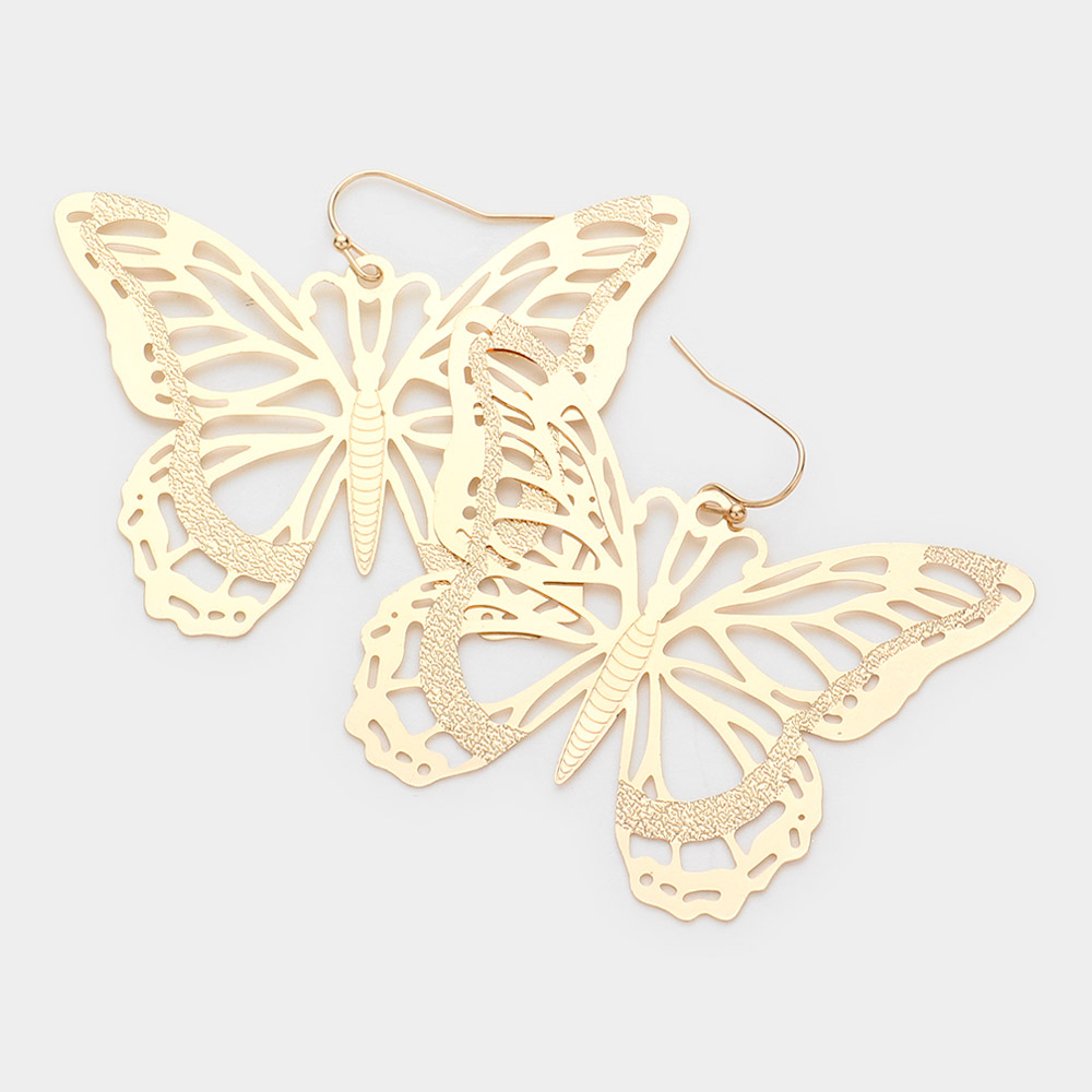 Felt Back Sequin Triple Butterfly Link Dangle Earrings