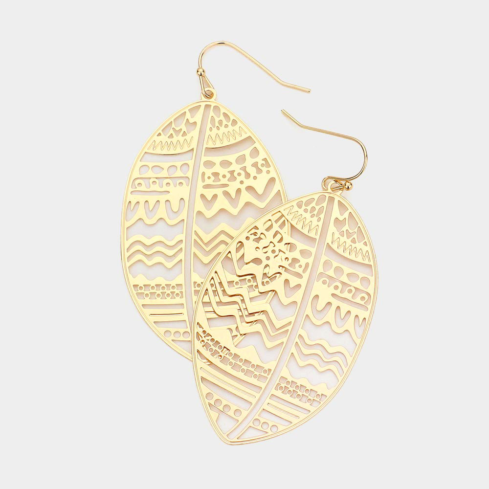 Brass Metal Filigree Abstract Oval Dangle Earrings