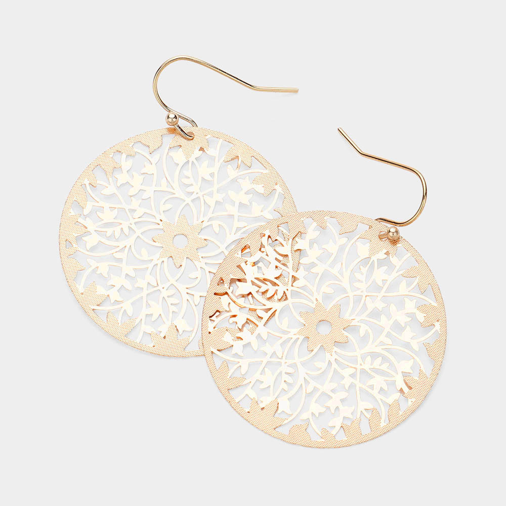 Leather Trim Filigree Metal Diamond Shaped Dangle Earrings