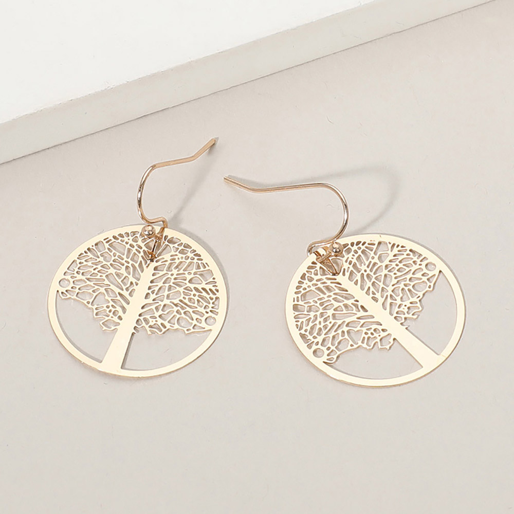 Details • Size: 1" X 1.25" • Fish Hook Back • Embrace natural elegance with these Tree of Life cutout circle earrings. Featuring detailed openwork craftsmanship, they symbolize growth and harmony while adding a refined touch to any look. Lightweight and versatile, they’re perfect for both everyday wear and meaningful gifting. • Lead and Nickel Compliant • Brass
