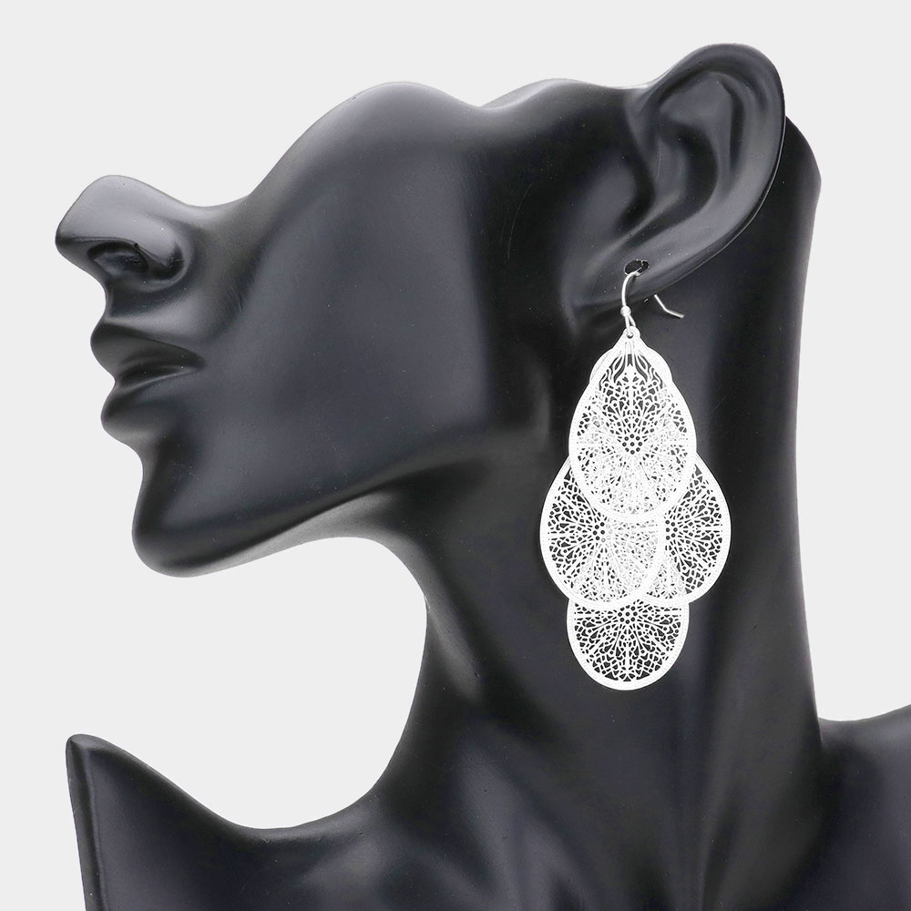 Filigree Leaf Cluster Silhouette Drop Earrings