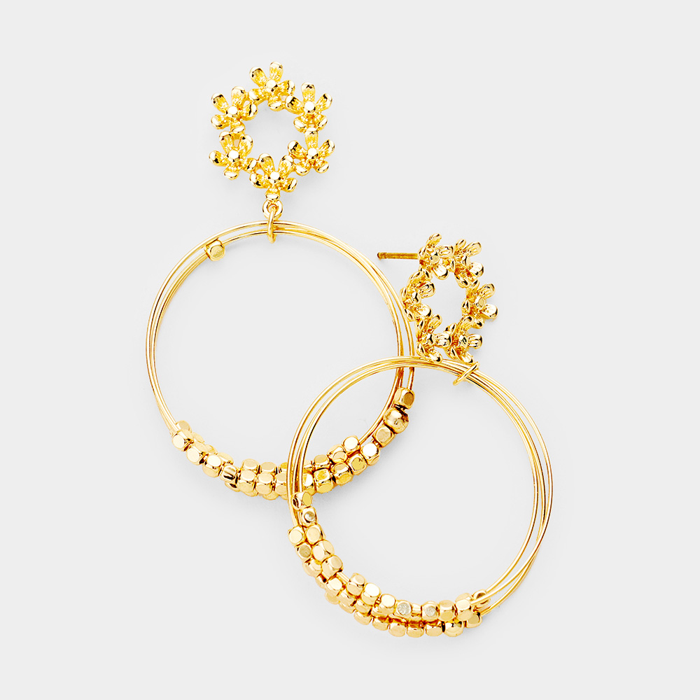 Stone Embellished Abstract Metal Link Dangle Earrings