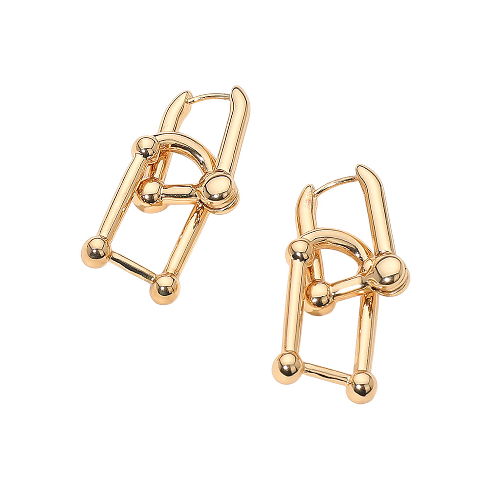 Details • Size : 0.6" X 1.6" • Post Back • Elevate your jewelry collection with these geometric linked earrings featuring a sculptural, minimalist design. Perfect for adding a sleek, modern accent to any outfit, they blend elegance and edge, making them a versatile statement piece for day or night. • Lead and Nickel Compliant