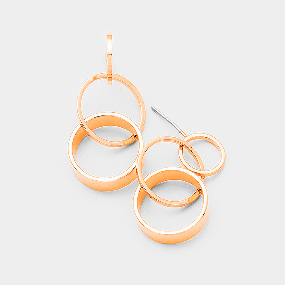 Gold Dipped Geometric Triple Metal Hoop Link Earrings