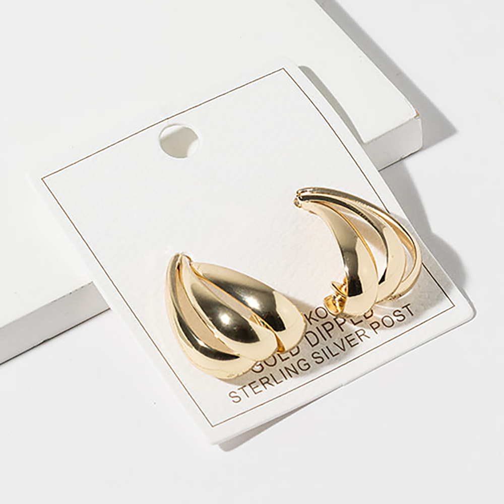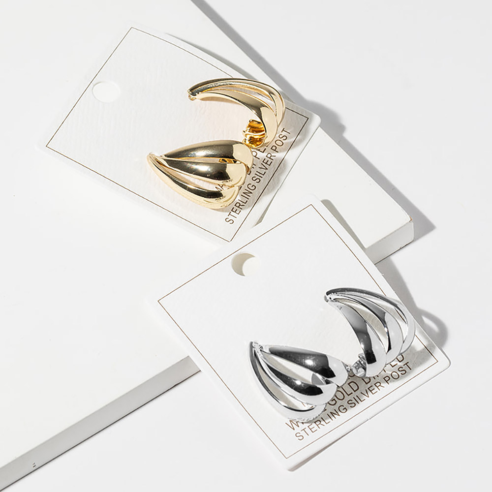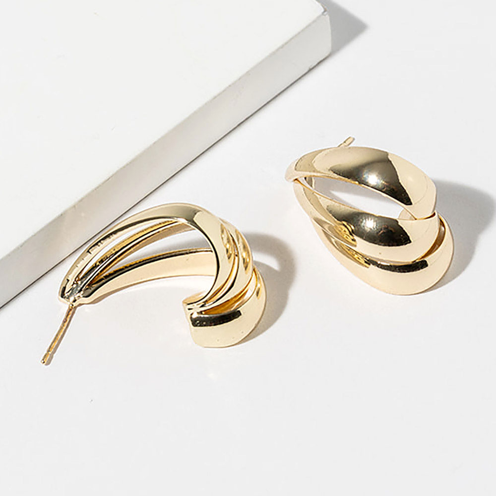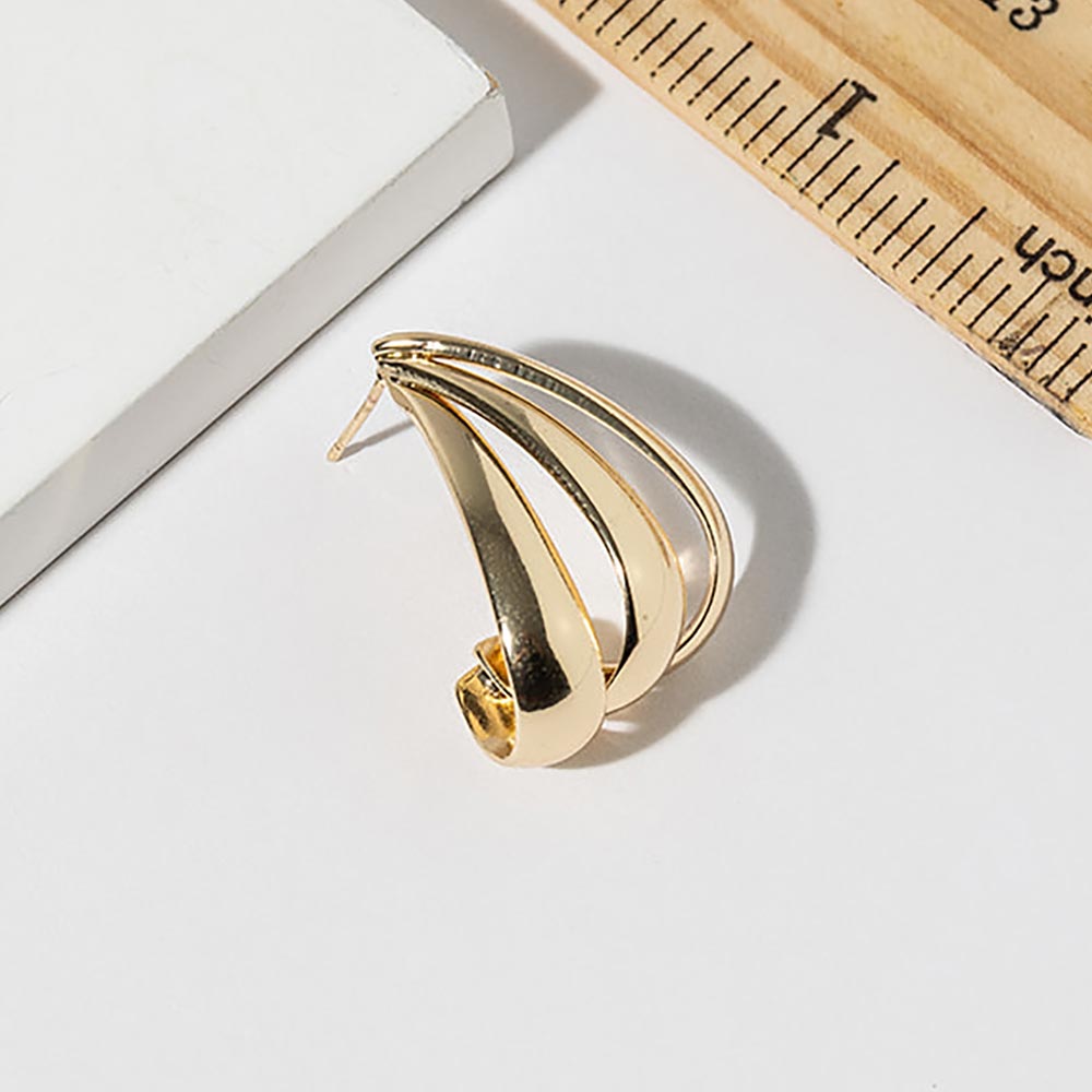 • Modern stud earrings featuring a sculpted teardrop silhouette with layered curved detailing and a smooth polished finish. Designed to elevate everyday looks and refined outfits, these statement studs offer dimensional style, elegant contours, and versatile appeal, making them a standout addition to any contemporary jewelry collection.