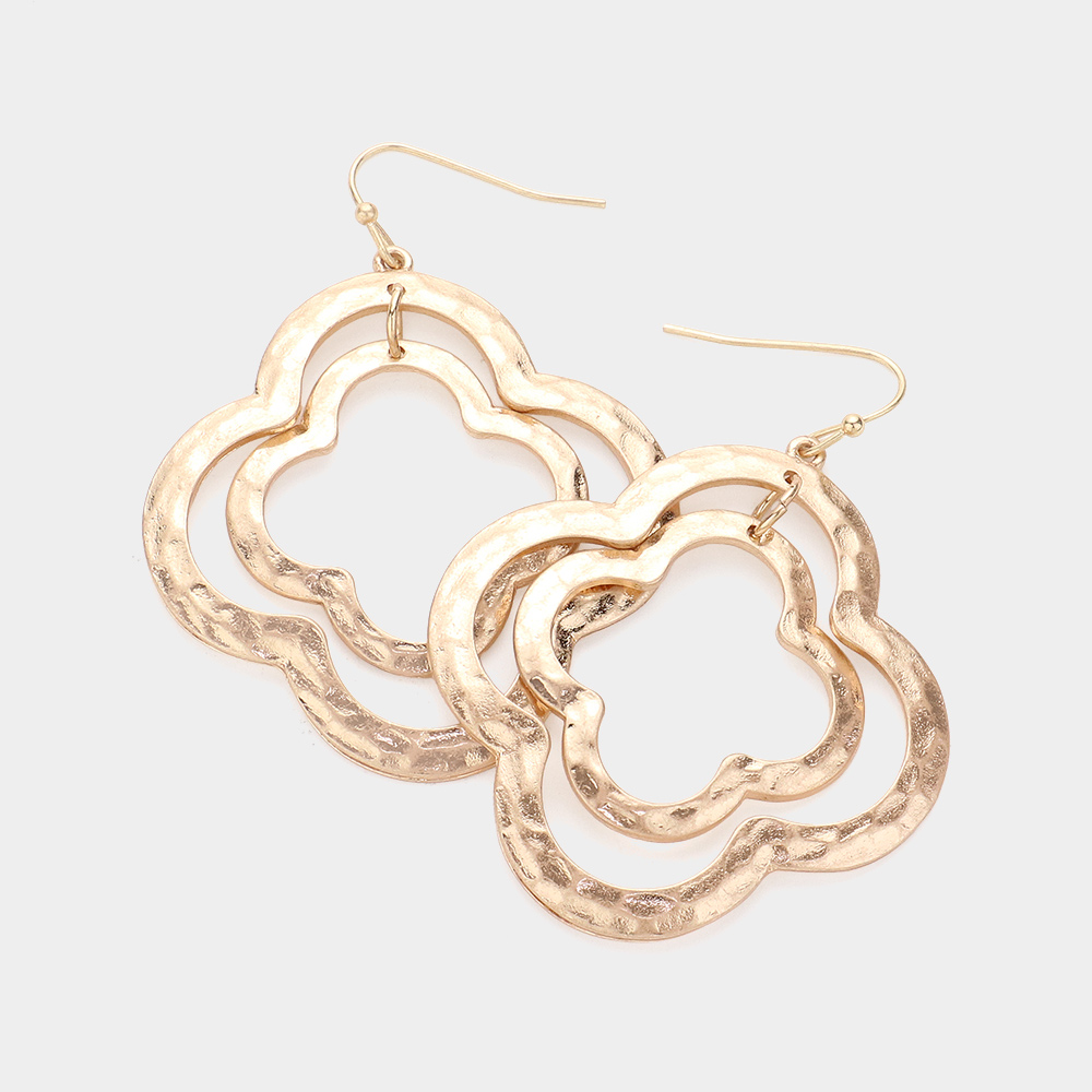Hammered Metal Quatrefoil Dangle Earrings