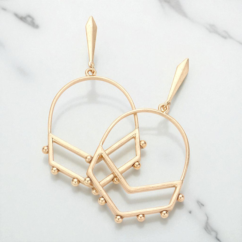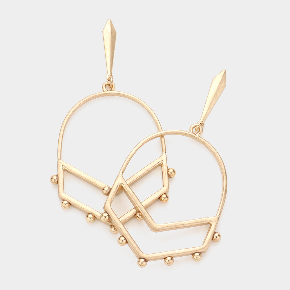 Open Metal Oval Natural Stone Teardrop Link Dangle Earrings