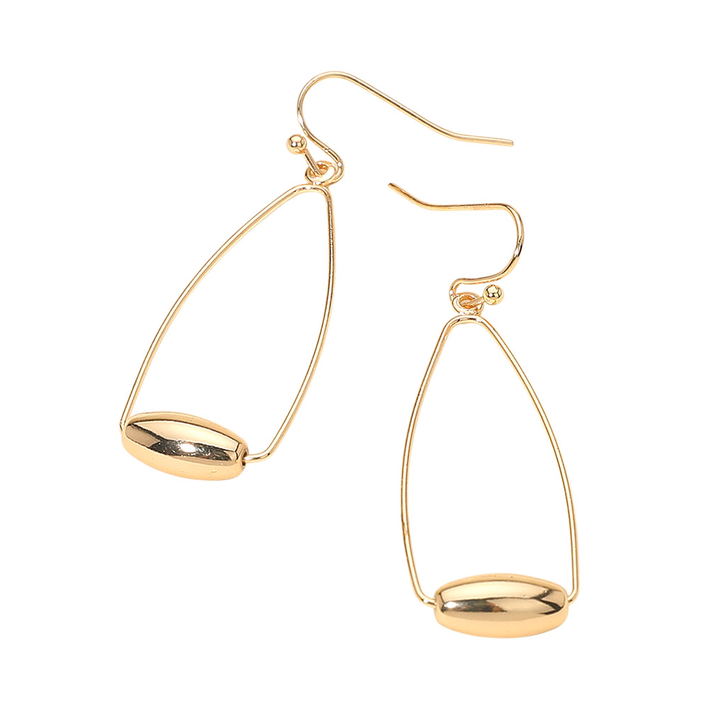 Metal Bead Accent Teardrop Wire Frame Drop Earrings