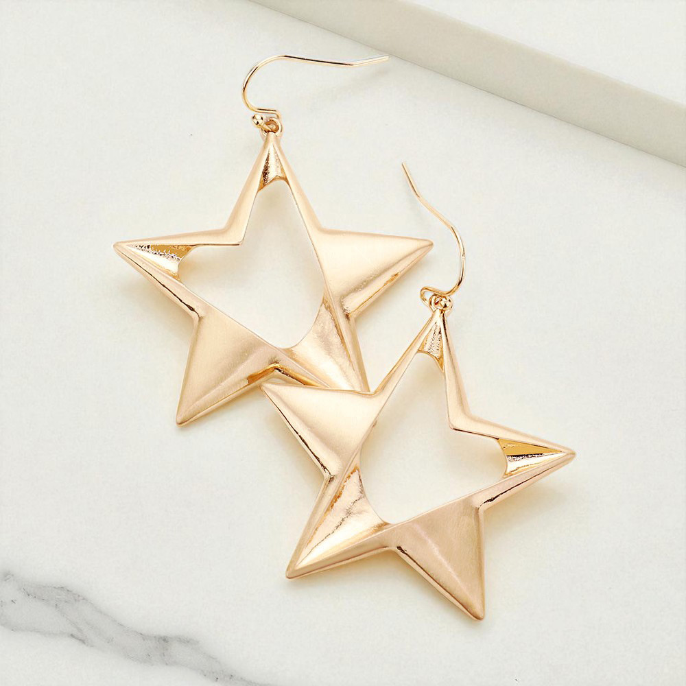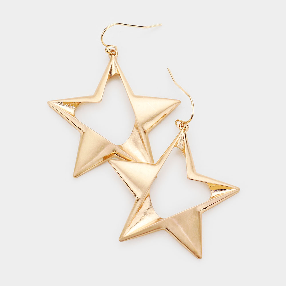 Metal Crescent Moon Druzy Star Link Dangle Earrings