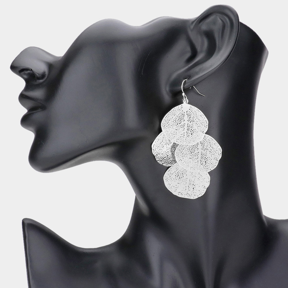 Petal Filigree Brass Metal Dangle Earrings