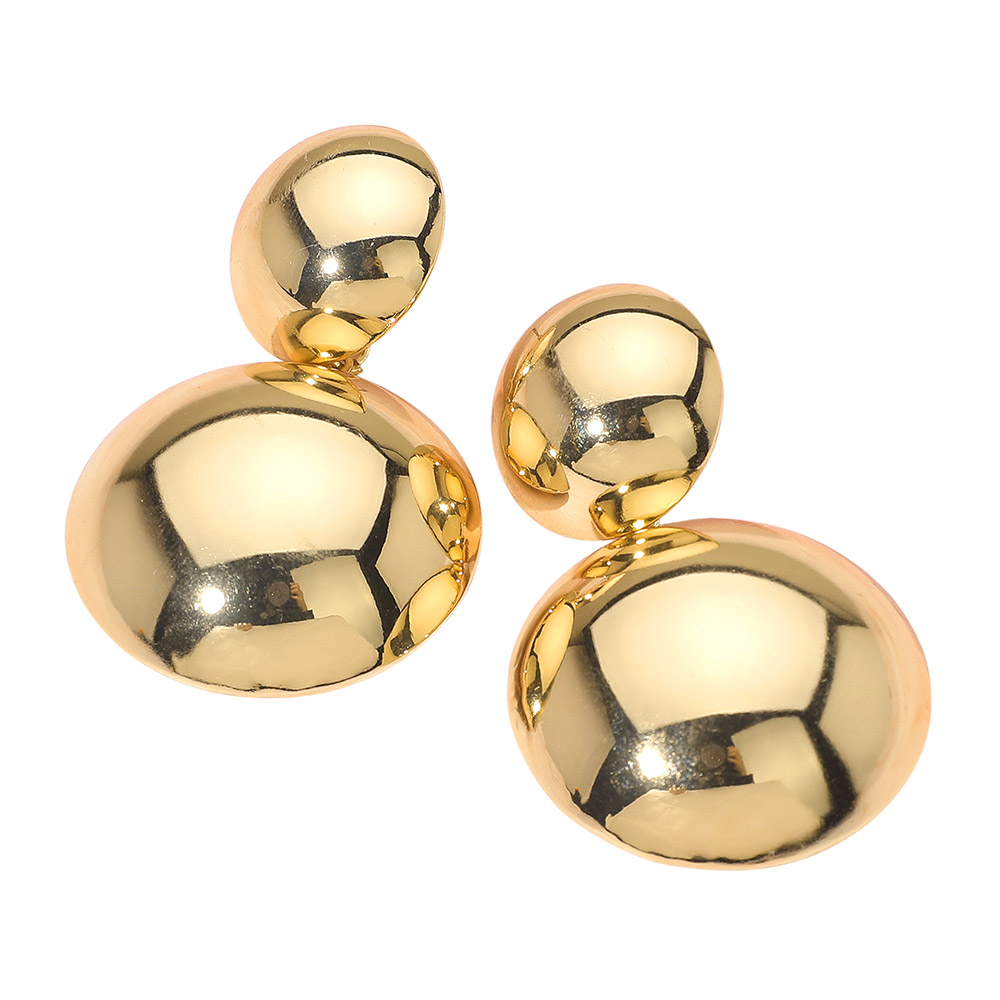Details • Size : 1.7" X 2.5" • Post Back • Make a bold yet elegant statement with these polished dome drop earrings. Their sleek, sculptural silhouette and reflective finish bring modern sophistication to any look. Perfect for adding a touch of contemporary glamour to both casual and formal outfits with effortless appeal. • Lead and Nickel Compliant