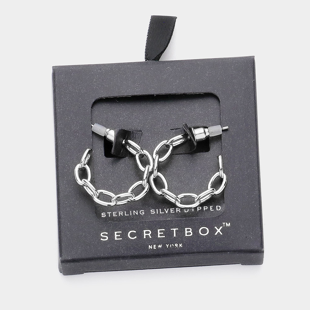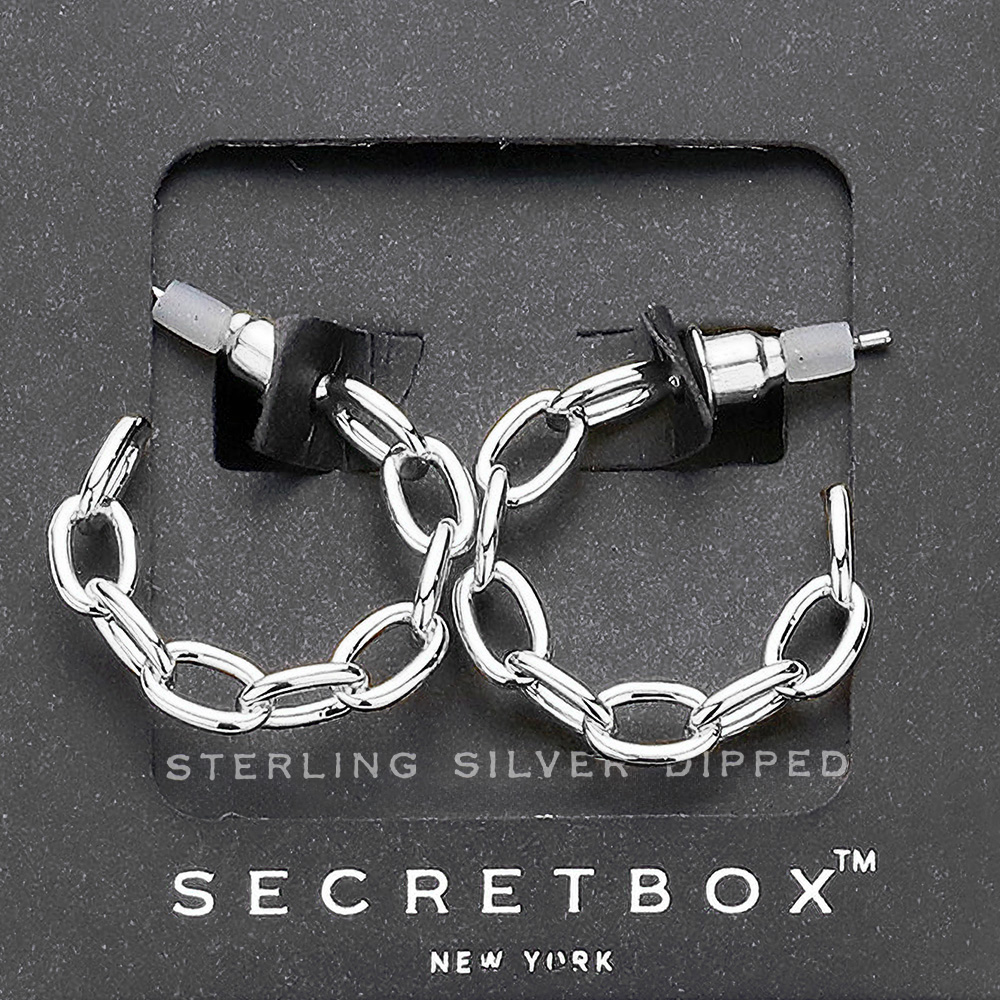 SECRET BOX_Sterling Silver Dipped Chain Link Hoop Earrings