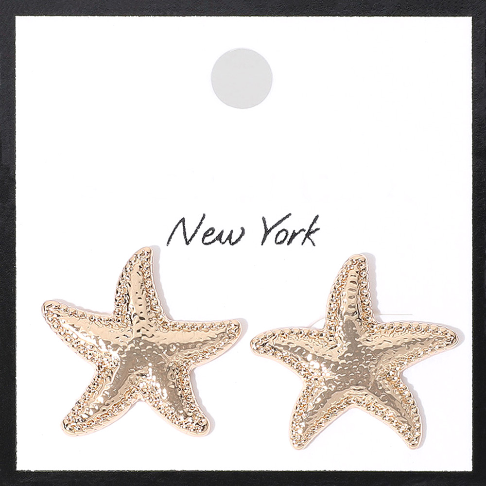 Glittered Resin Starfish Stone Cluster Link Statement Necklace