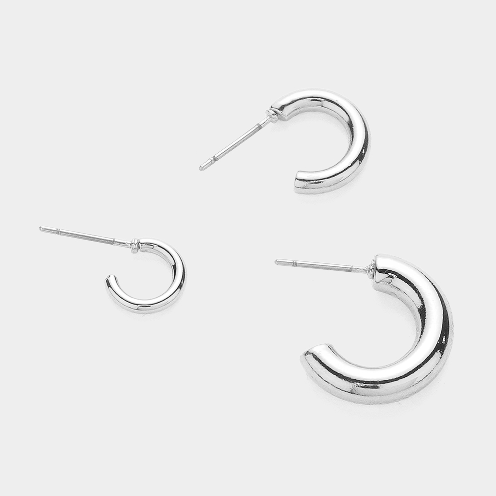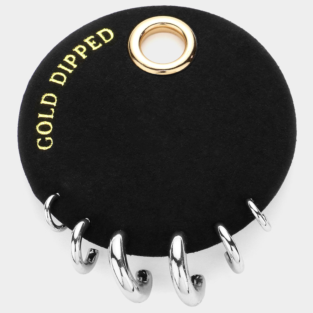 Details • Size : 0.6" L - 0.7" L • Post Back • A versatile three-pair hoop earring set featuring smooth, minimalist mini hoops in varying sizes. Perfect for mixing, matching, and stacking, this curated set delivers a polished modern look that effortlessly complements both casual and dressy styles. • Gold Dipped