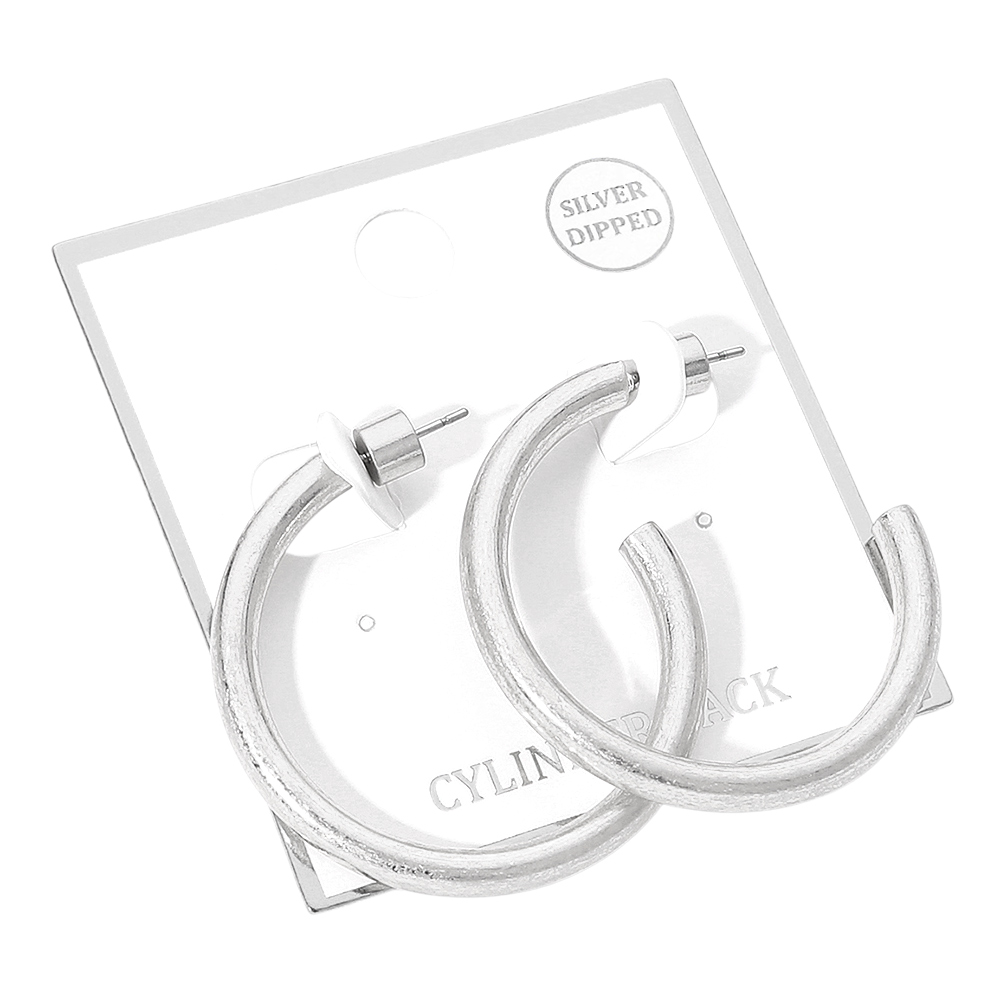 Details • Size : 1.5" X 1.5" X 0.2" • Cylinder Back • Bold round hoop earrings featuring a chunky open-circle design with secure cylinder backs. Worned out finish creates a modern statement look. Lightweight, easy to style, and perfect for elevating everyday or dressy outfits with a clean, contemporary touch. • Lead and Nickel Compliant • Sterling Silver Dipped