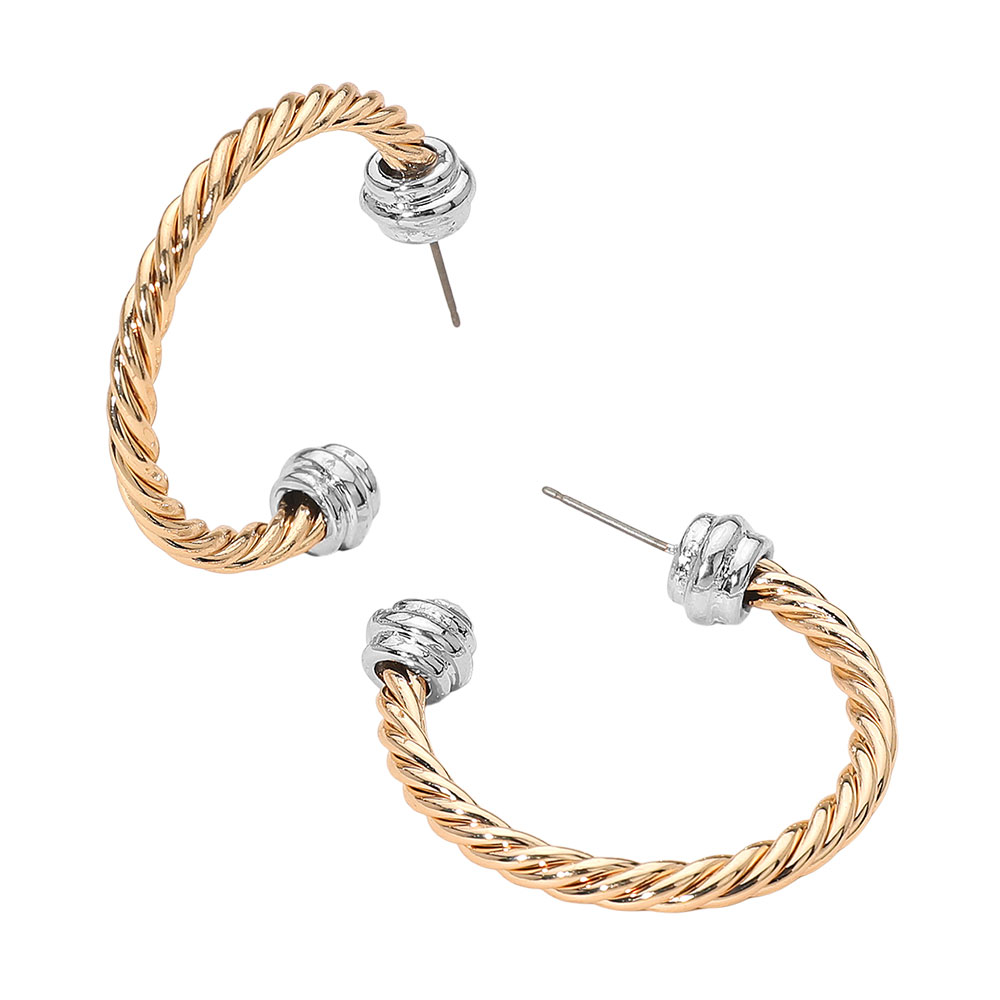 Two Tone Metal Rope Hoop Earrings Two Tone Metal Rope Hoop Earrings