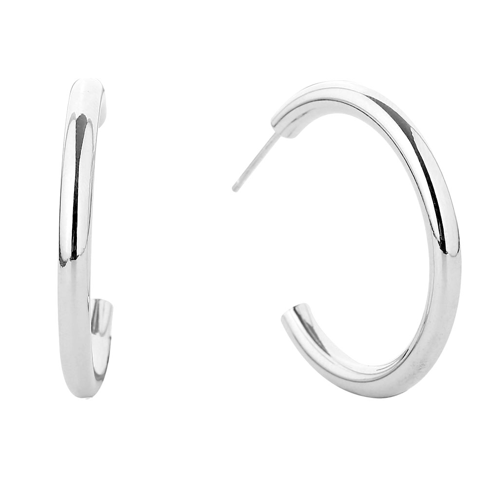 Details • Size : 1.2" X 1.2" • Post Back • Water resistant plating • Timeless medium hoop earrings designed with a smooth and modern finish. Lightweight and comfortable, they bring effortless style for daily wear or special occasions, making them a versatile jewelry essential for any wardrobe. • Brass • Gold Dipped • Hypoallergenic • Lead and Nickel Compliant • Made In Korea