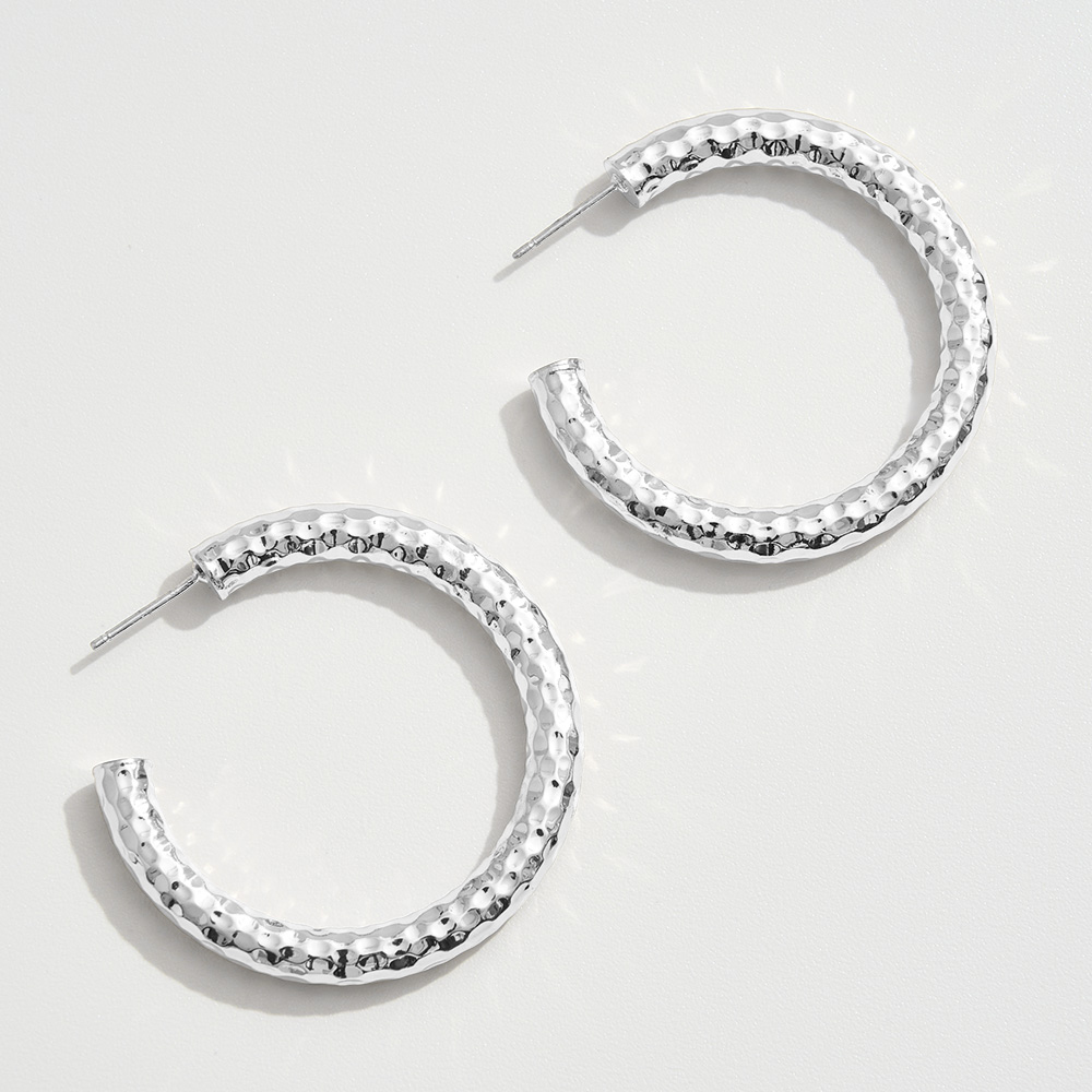 White Gold Dipped Hammered Textured Hoop Earrings White Gold Dipped Hammered Textured Hoop Earrings White Gold Dipped Hammered Textured Hoop Earrings
