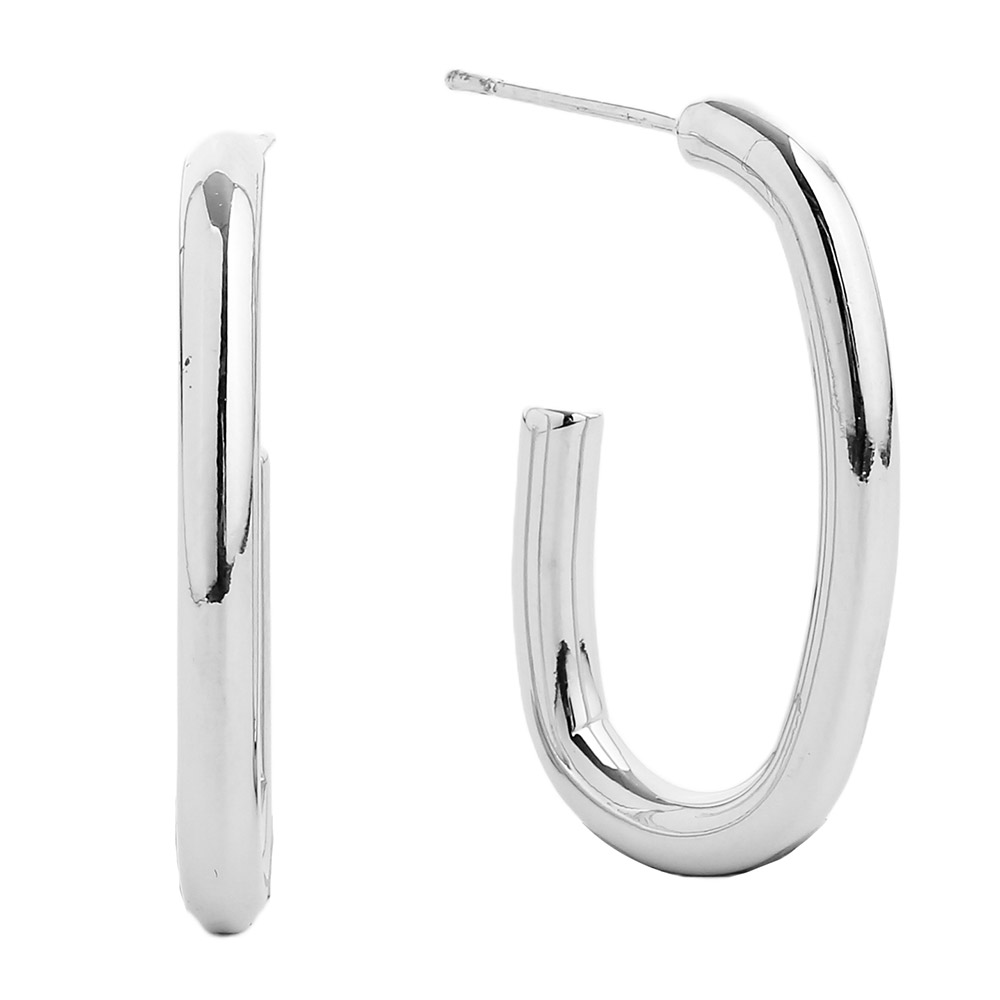 White Gold Dipped Oval Hoop Earrings White Gold Dipped Oval Hoop Earrings White Gold Dipped Oval Hoop Earrings