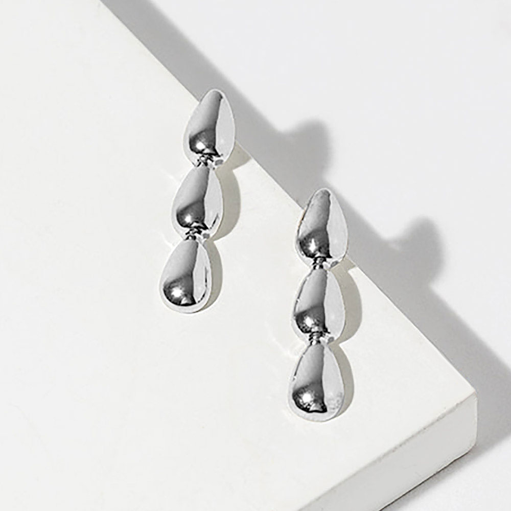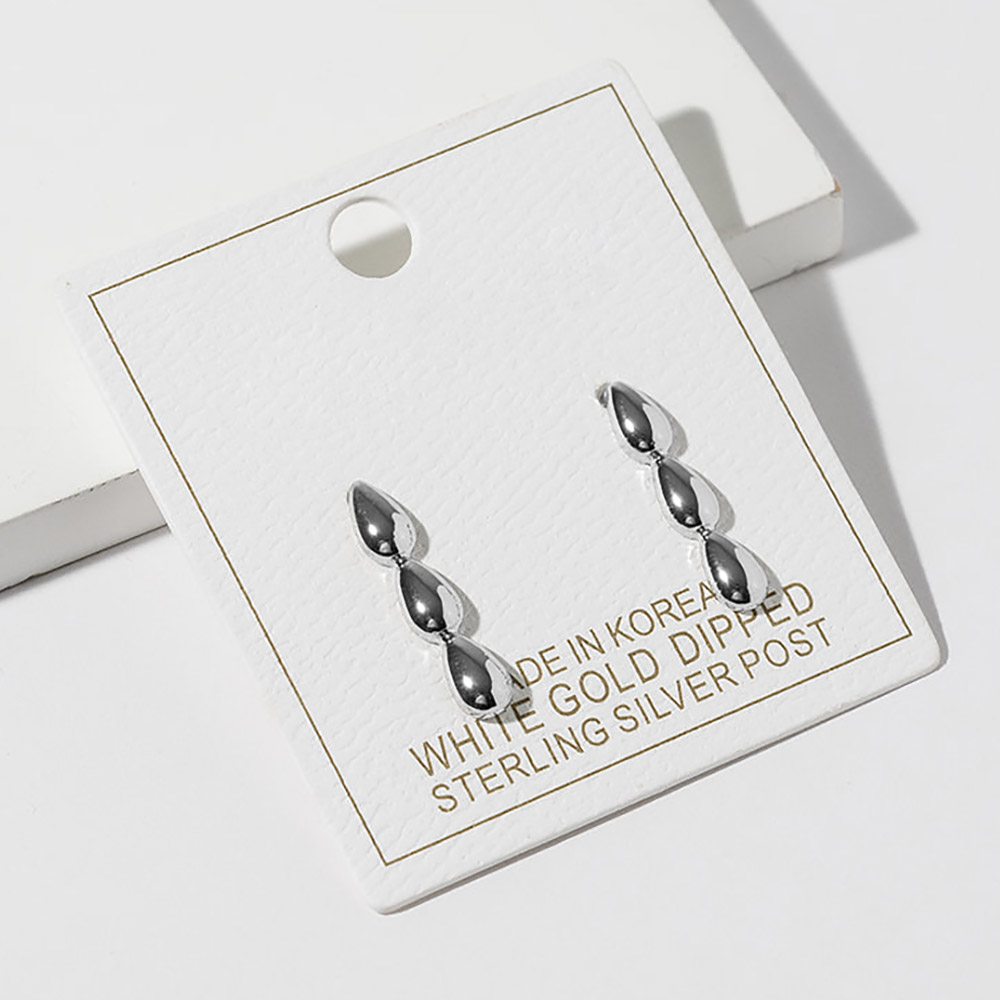 • Elegant stud earrings featuring a sleek triple drop design with softly rounded shapes arranged in a vertical silhouette. Designed to add subtle movement and refined style, these studs are perfect for everyday wear, work outfits, and dressy occasions, offering modern simplicity and timeless appeal for any jewelry collection.
