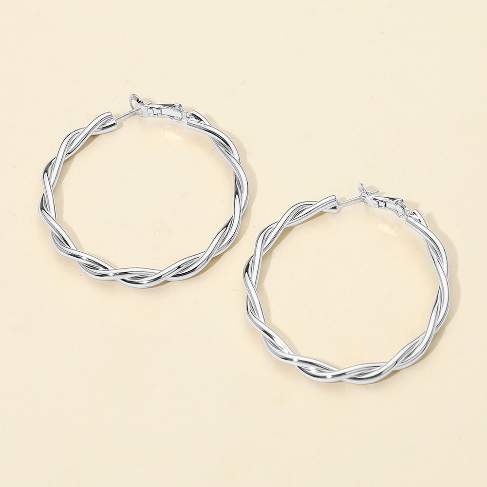 Details • Size : 2" X 2" • Omega Back • Stylish hoop earrings featuring a twisted braided design that adds texture and elegance to any look. Lightweight and versatile, these earrings are perfect for casual or dressy occasions, offering a timeless accessory that enhances everyday outfits with a chic and modern touch. • Brass • Gold Dipped • Hypoallergenic • Lead and Nickel Compliant • Made In Korea
