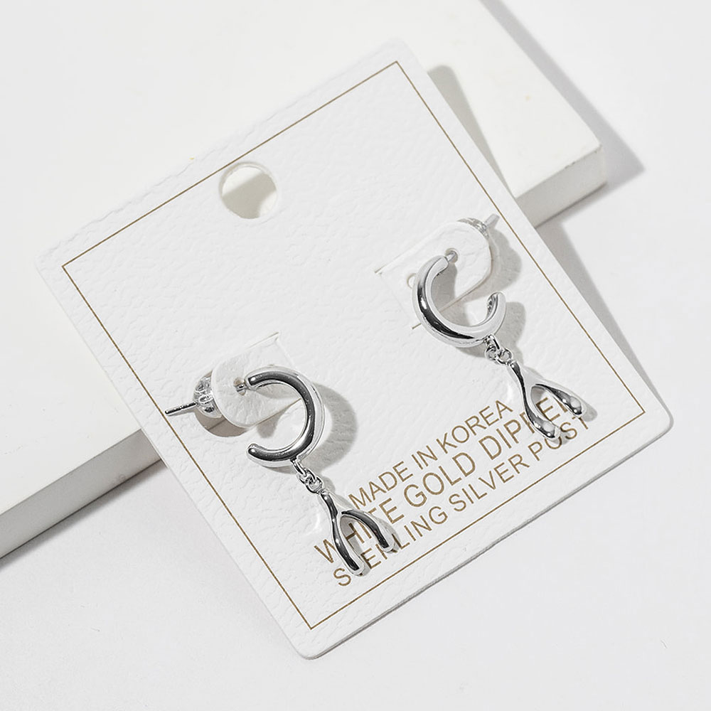 Details • Size : 0.5" X 1" • Crescent hoop drop earrings featuring a sleek curved silhouette accented with a delicate wishbone charm. Designed for effortless styling, these lightweight earrings add subtle movement and modern elegance to everyday looks, boutique collections, and gift-ready accessory assortments. • Lead and Nickel Compliant • Made In Korea • Gold Dipped • Sterling Silver Post