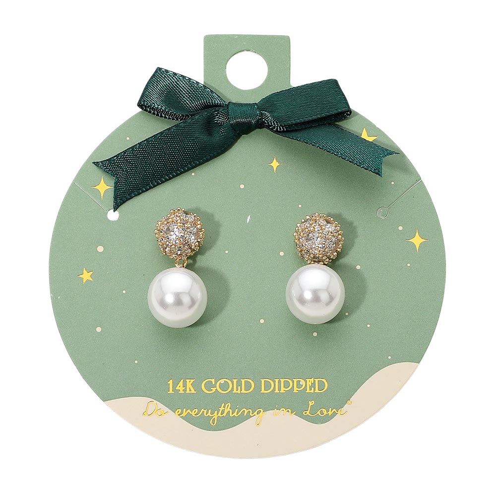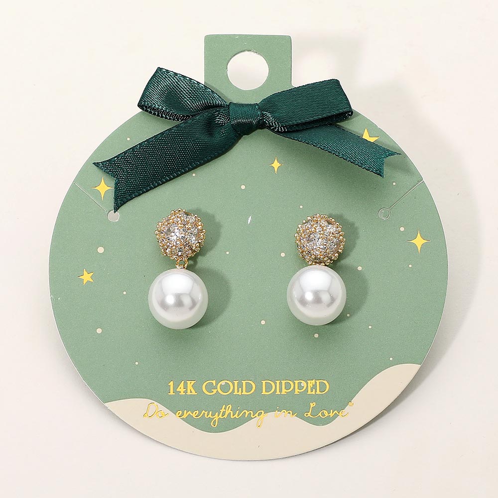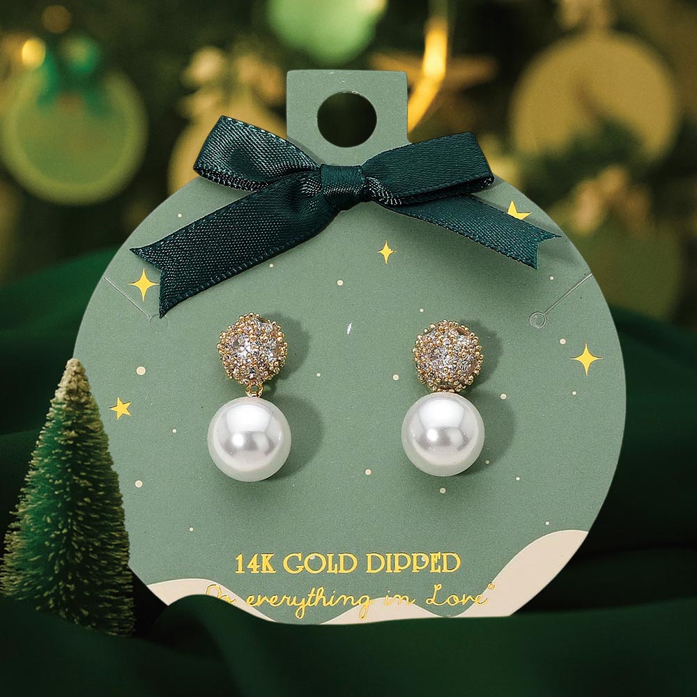 Details • Size : 0.5" X 1" • Post Back • Elegant crystal cluster pearl drop earrings featuring a sparkling rounded top paired with a smooth dangling pearl. Their refined silhouette makes them perfect for gifting, formal occasions, seasonal styling, or adding a polished touch to everyday looks. A timeless accessory with graceful shine. • Gold Dipped • Hypoallergenic • Lead and Nickel Compliant • Made In Korea