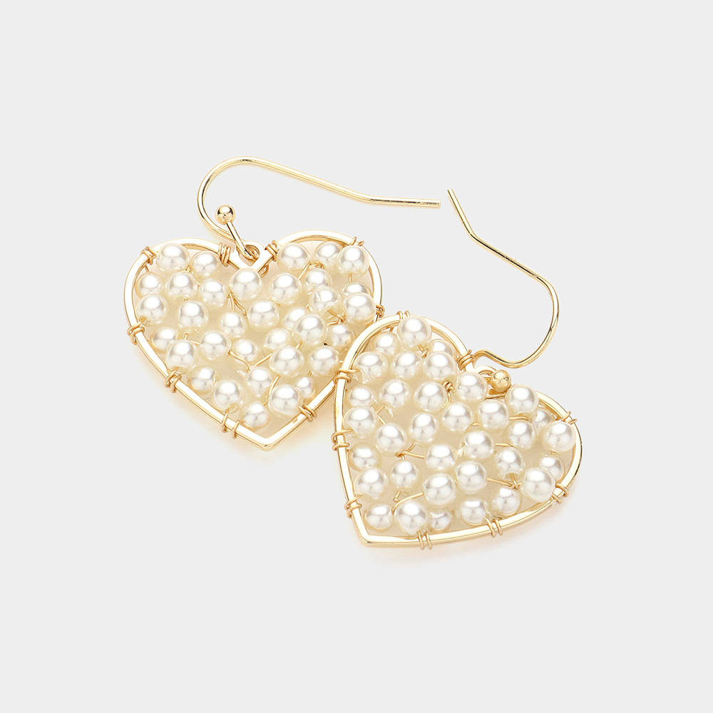 Rhinestone Embellished Metal Heart Beaded Open Circle Earrings