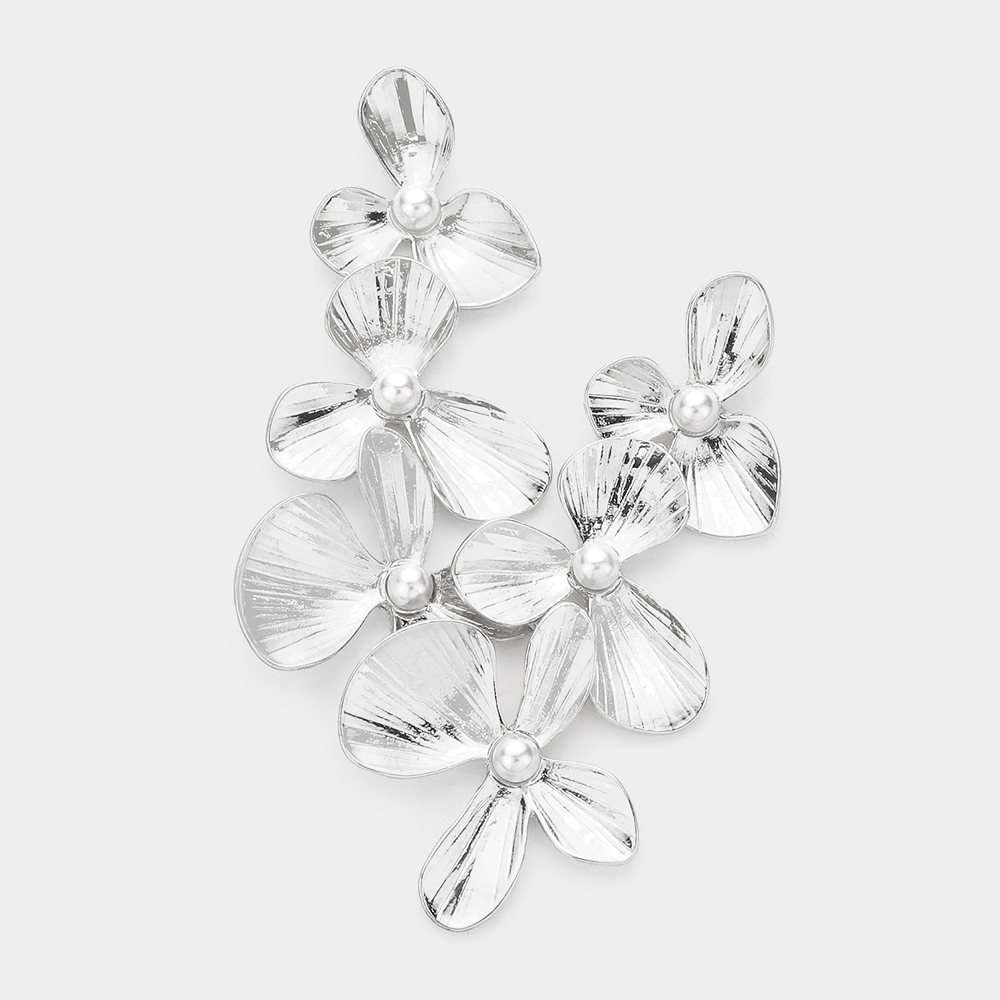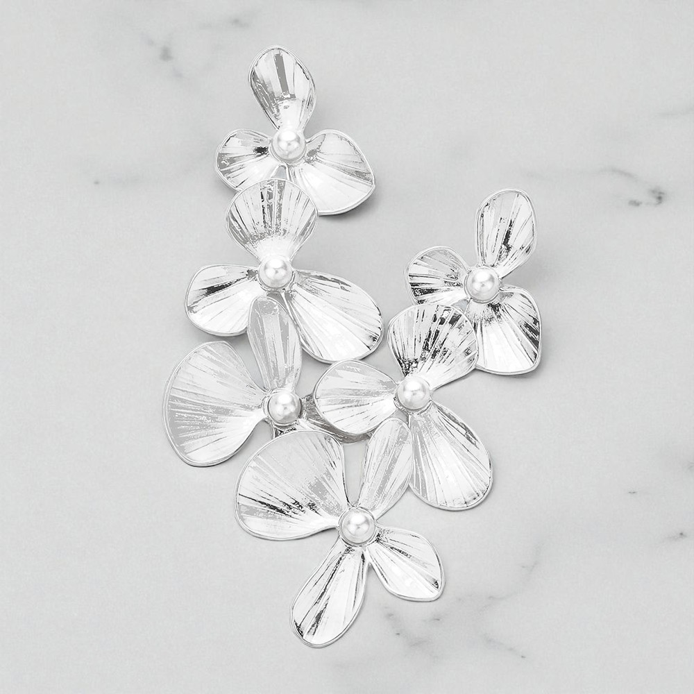 White Gold Dipped Rectangular CZ Stone Cluster Drop Earrings