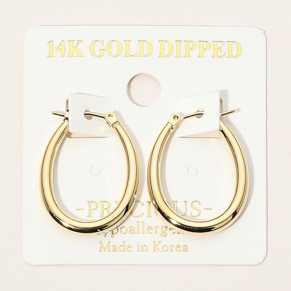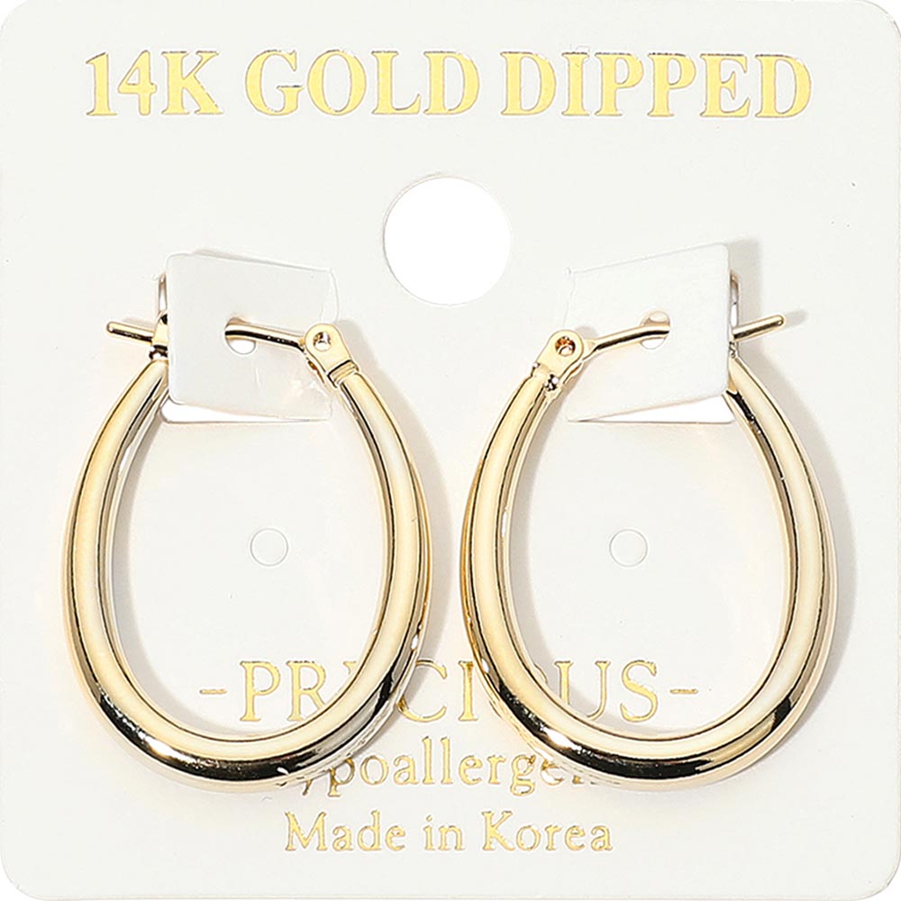 14K Gold Dipped Hypoallergenic Oval Pin Catch Hoop Earrings