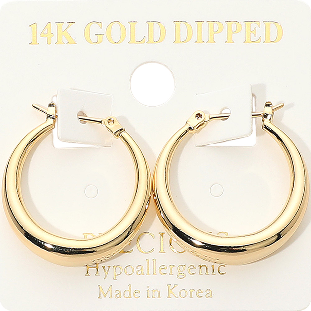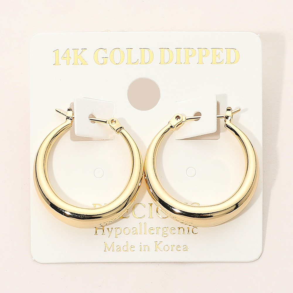 Details • Size : 1" X 1" • Pin Catch • Elevate your daily look with these classic rounded hoop earrings featuring a smooth, polished profile and clean modern design. Lightweight and versatile, they transition effortlessly from casual wear to evening outfits, delivering understated style and long-lasting wear comfort. • Gold Dipped • Hypoallergenic • Made In Korea