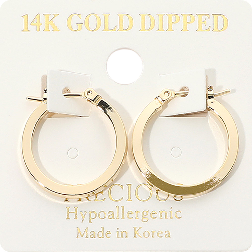 Details • Size : 0.8" X 0.8" • Pin Catch • Refine your accessory collection with these polished hoop earrings designed for effortless daily styling. Their smooth circular silhouette and lightweight feel make them perfect for work, casual outings, or evening wear, offering versatile elegance with comfortable all-day use. • Gold Dipped • Hypoallergenic • Made In Korea