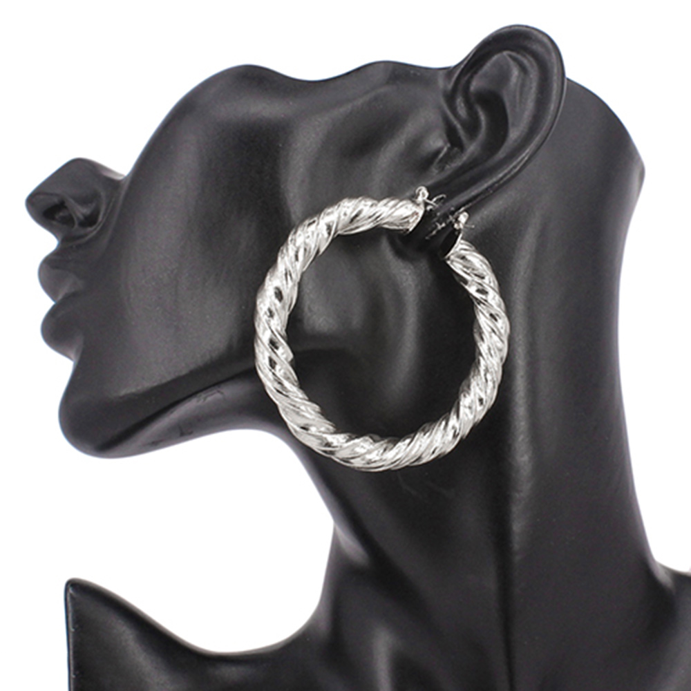 Brushed Metal Twisted Hoop Pin Catch Earrings