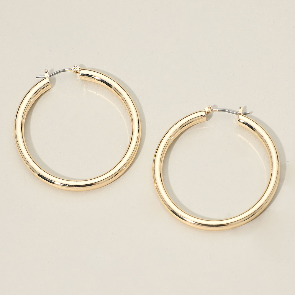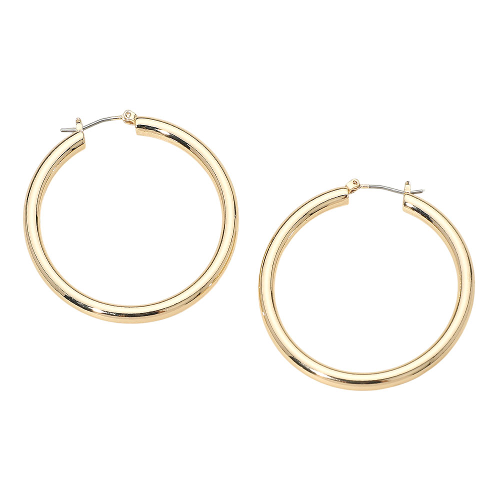 • Bold thick hoop earrings featuring a smooth, polished round design that adds a modern statement to any look. Lightweight and comfortable for all-day wear, these timeless hoops complement casual outfits, work attire, and dressy styles, making them a versatile must-have accessory.