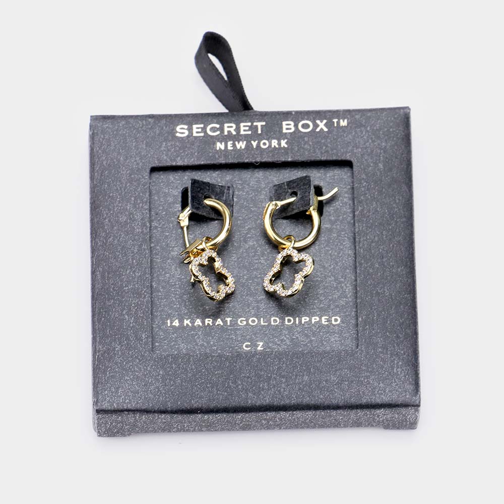 Secret_Box - 14K Gold Dipped CZ Clover Drop Pin Catch Earrings