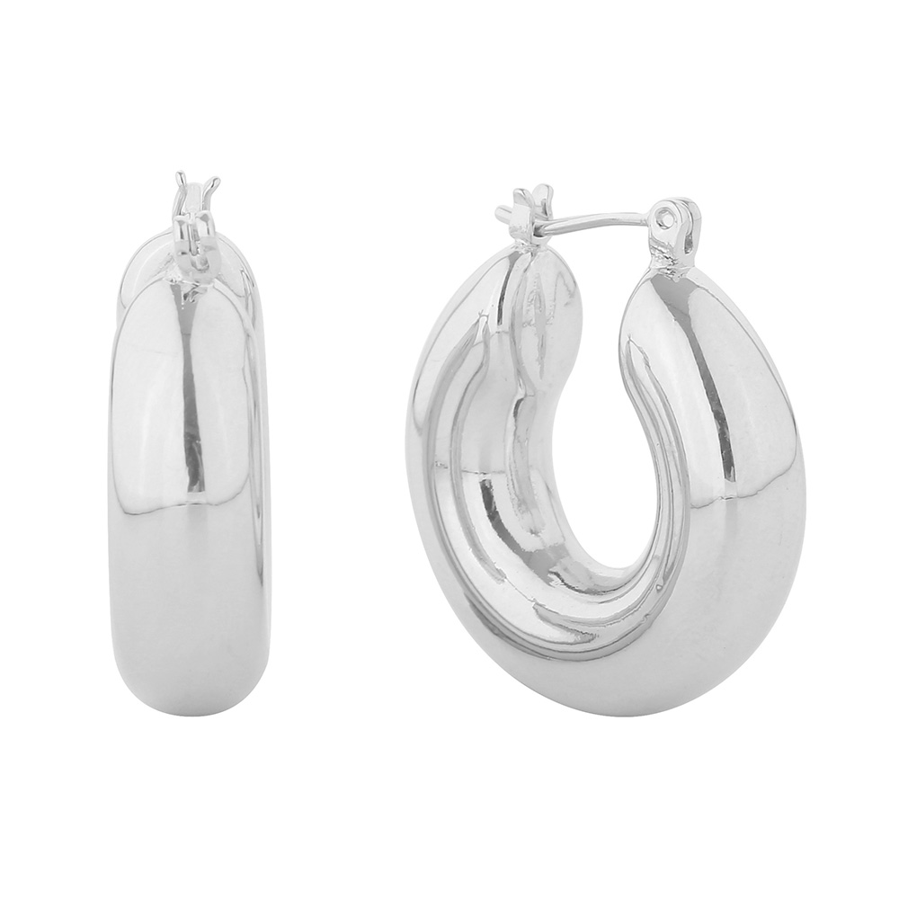 Details • Size : 1" X 1.1" X 0.3" • Pin Catch • Striking rounded hoop earrings crafted with a bold sculpted silhouette and smooth high-shine finish. Perfect for adding modern sophistication to casual looks or elevating special occasion outfits with timeless elegance. • Brass • Gold Dipped • Hypoallergenic • Lead and Nickel Compliant • Made In Korea