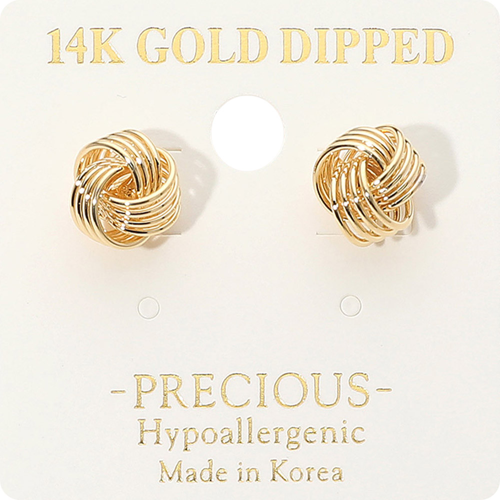 14K Gold Dipped Hypoallergenic Intertwined Knot Stud Earrings