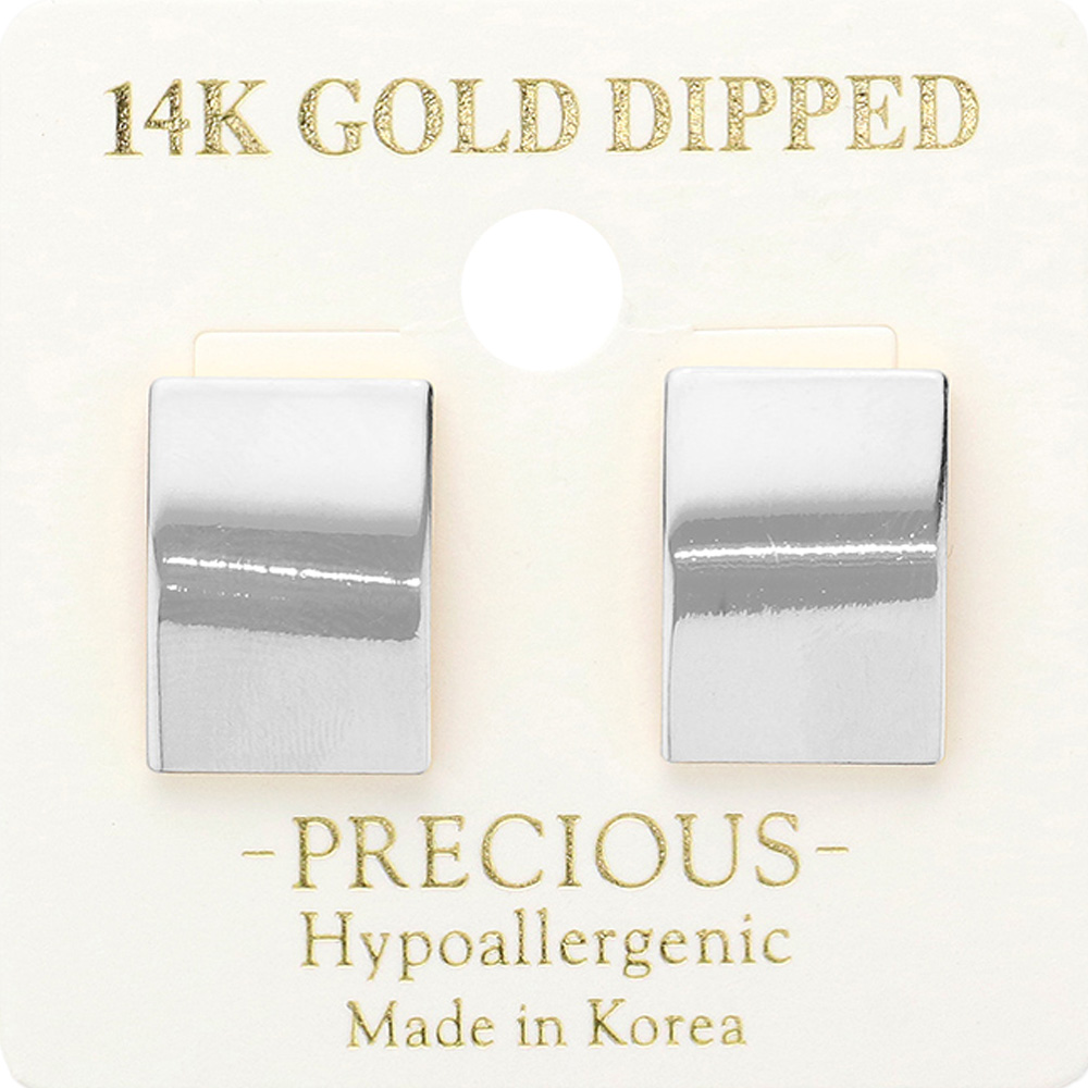14K Gold Dipped Hypoallergenic Rectangular Plate Stud Earrings