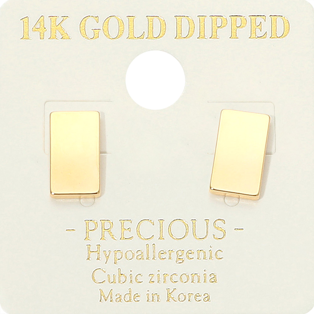 14K Gold Dipped Hypoallergenic Rectangular Plate Stud Earrings