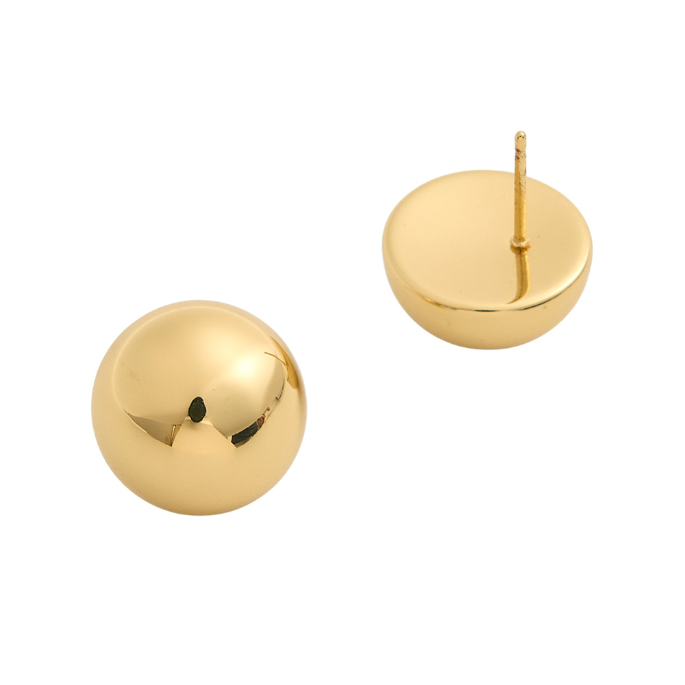 Details • Size : 0.7" X 0.7" • Post Back • Sleek and modern, these round dome stud earrings bring a polished finish to any look. Their smooth, reflective surface makes them versatile for both casual wear and formal occasions, offering a timeless accessory that adds elegance and sophistication with ease. • Brass • Gold Dipped • Lead and Nickel Compliant • Made In Korea
