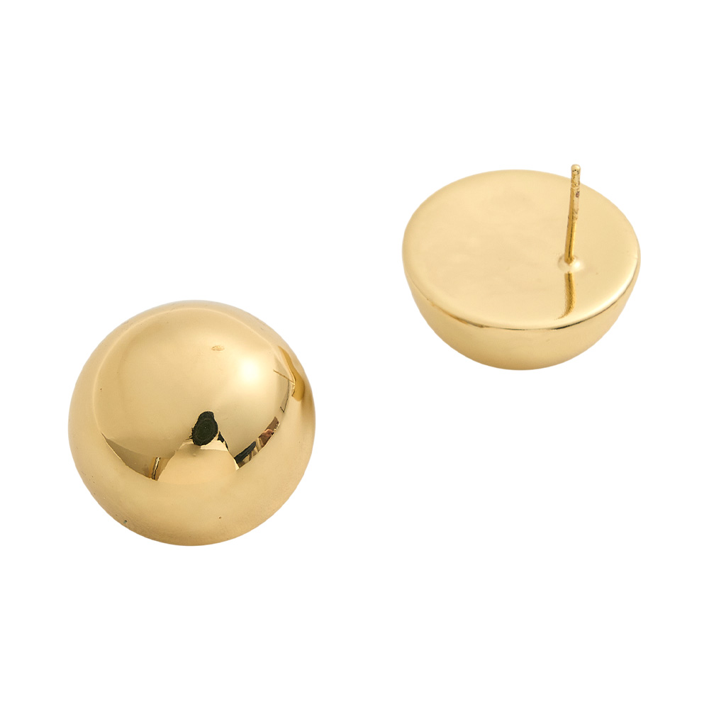 Details • Size : 0.8" X 0.8" • Post Back • Sleek and modern, these round dome stud earrings bring a polished finish to any look. Their smooth, reflective surface makes them versatile for both casual wear and formal occasions, offering a timeless accessory that adds elegance and sophistication with ease. • Lead and Nickel Compliant • Made In Korea • Gold Dipped • Brass