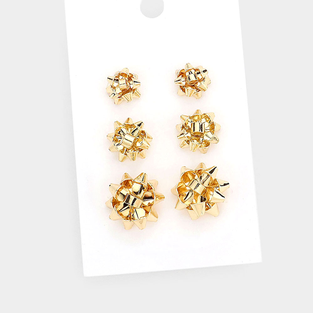 3PAIRS - Christmas Bow Stud Earrings