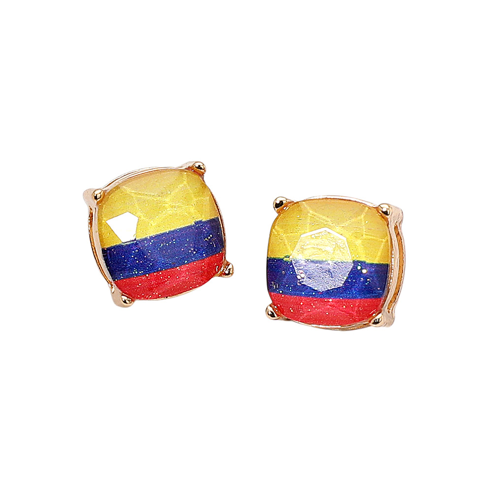 Details • Size : 0.5" X 0.5" • Post Back • Show your pride with these Colombia flag stud earrings, featuring the iconic sun emblem design framed in a sleek setting. Perfect for patriotic celebrations, travel, or everyday wear, these earrings combine national spirit with contemporary elegance for a meaningful, stylish accessory. • Lead and Nickel Compliant