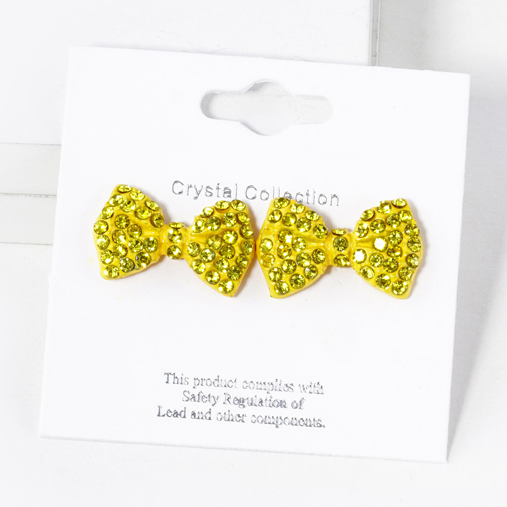 Details • Size : 0.75" X 0.5" • Post Back • Add a touch of glamour with the Crystal Bow Stud Earrings, featuring a radiant design that captures light beautifully. Perfect for both casual and formal looks, these sparkling earrings offer timeless elegance and charm, making them a must-have accessory for any jewelry collection. • Lead and Nickel Compliant