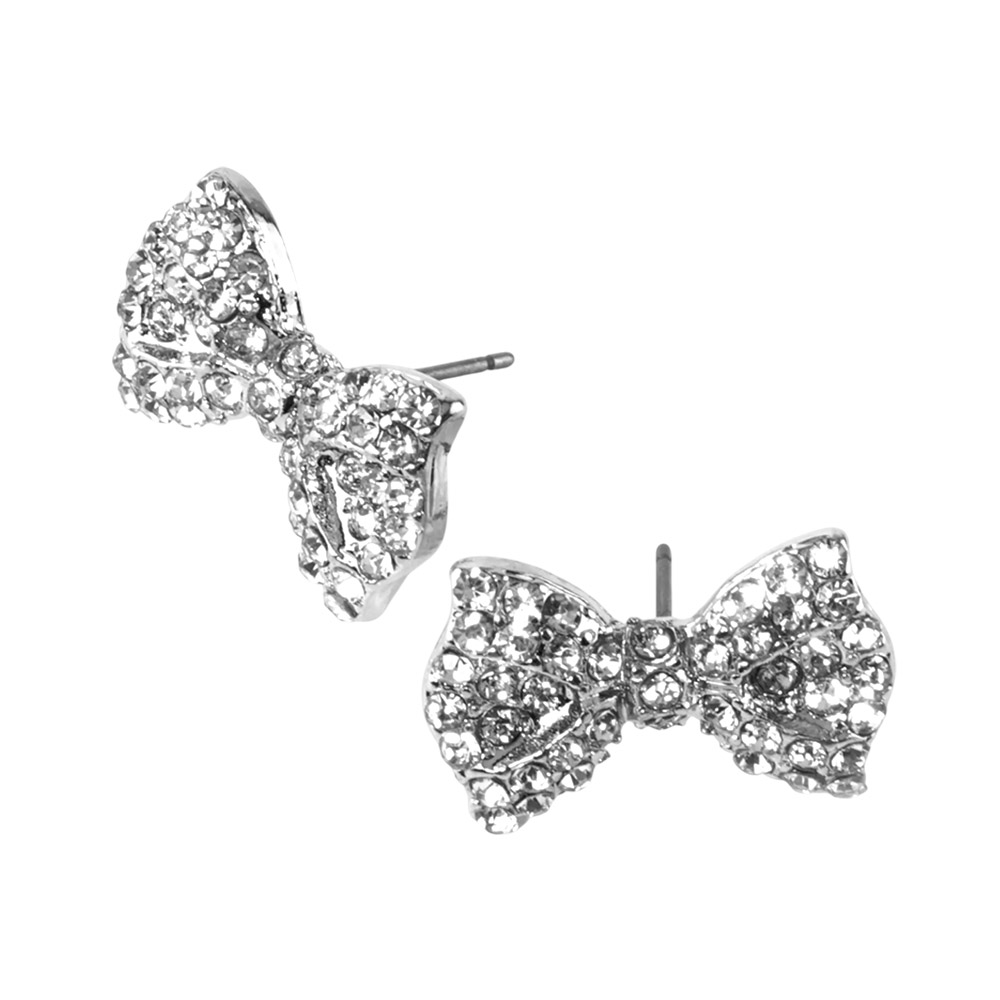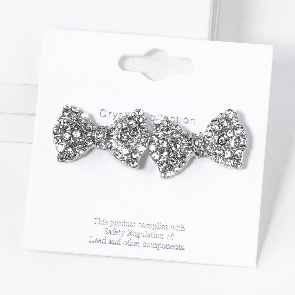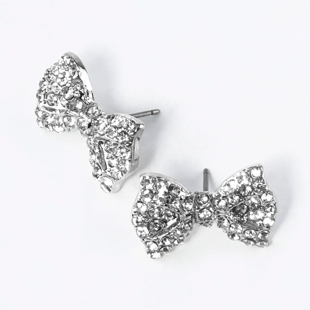 Details • Size : 0.75" X 0.5" • Post Back • Add a touch of glamour with the Crystal Bow Stud Earrings, featuring a radiant design that captures light beautifully. Perfect for both casual and formal looks, these sparkling earrings offer timeless elegance and charm, making them a must-have accessory for any jewelry collection. • Lead and Nickel Compliant