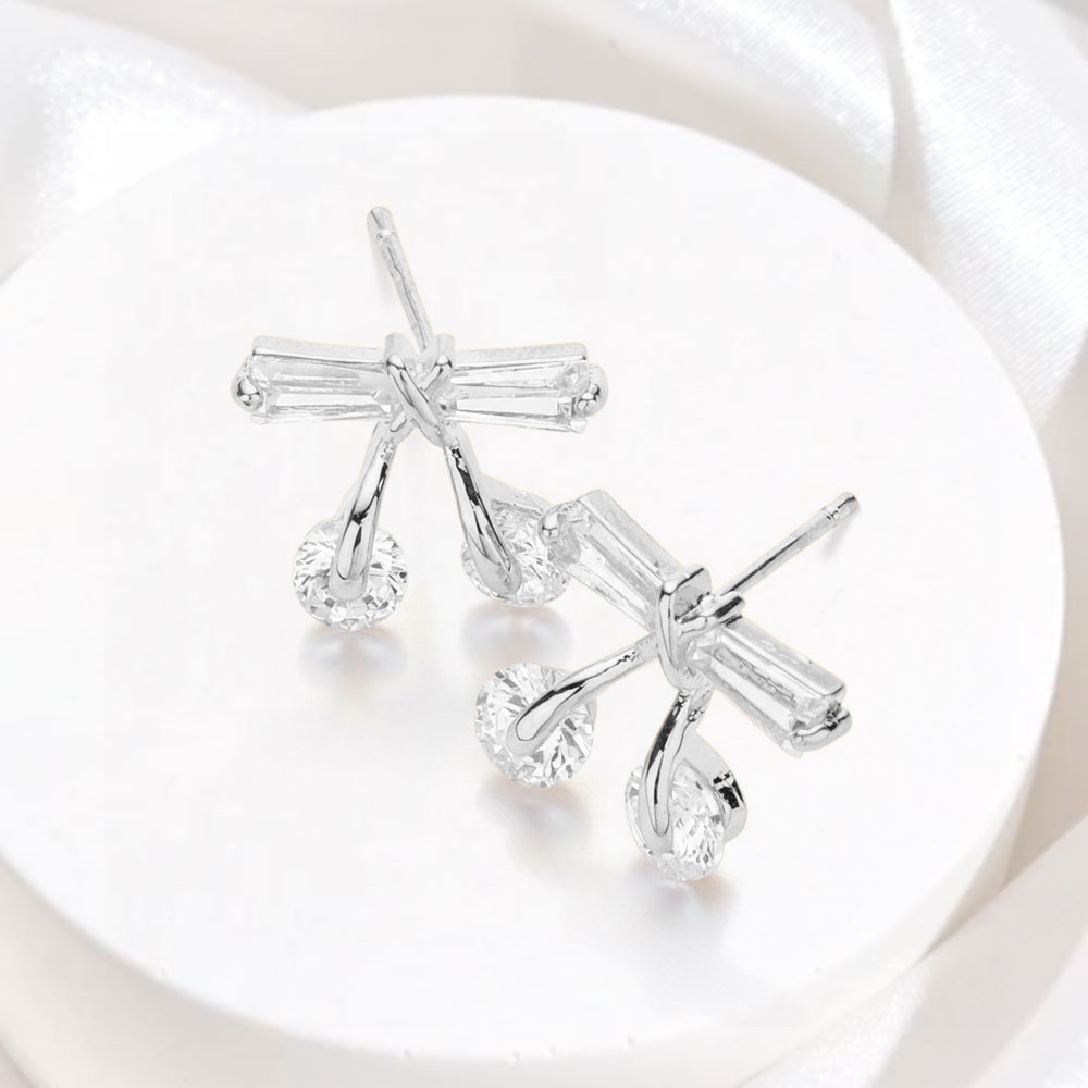 • Delicate bow-inspired stud earrings accented with sparkling drop details for subtle movement and refined shine. Designed to elevate everyday looks or complement special-occasion outfits, these lightweight studs offer a graceful statement that transitions effortlessly from day wear to evening elegance.