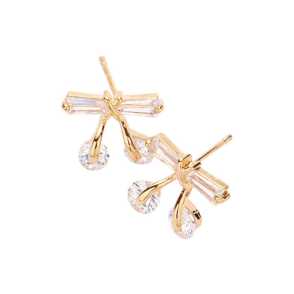 Details • Size : 0.5" X 0.4" • Post Back • Delicate bow-inspired stud earrings accented with sparkling drop details for subtle movement and refined shine. Designed to elevate everyday looks or complement special-occasion outfits, these lightweight studs offer a graceful statement that transitions effortlessly from day wear to evening elegance. • CZ Cubic Zirconia