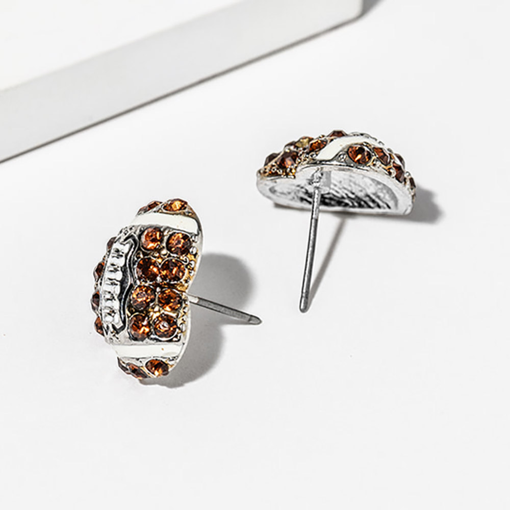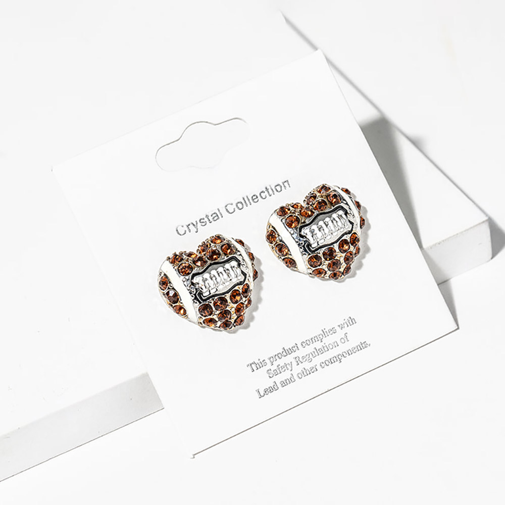 Details • Size : 0.7" X 0.8" • Post Back • These crystal sport ball theme stud earrings feature a brilliant pave design that sparkles with every movement. Their chic, modern silhouette adds a touch of luxury to any outfit, making them the perfect choice for both daily wear and special occasions that call for effortless sophistication. • Lead and Nickel Compliant