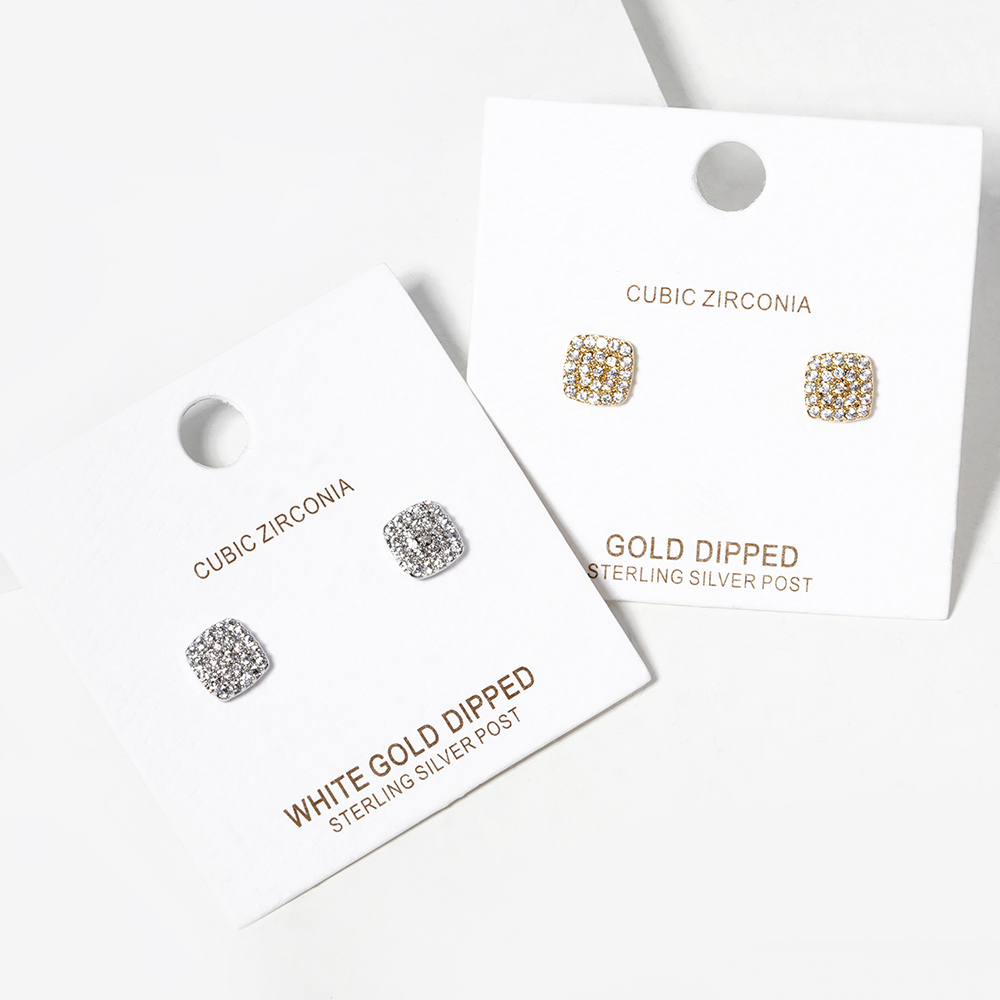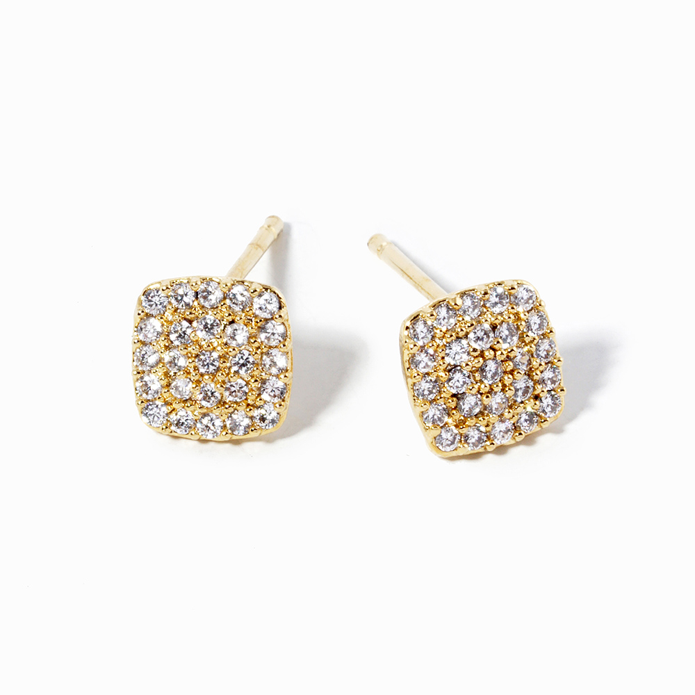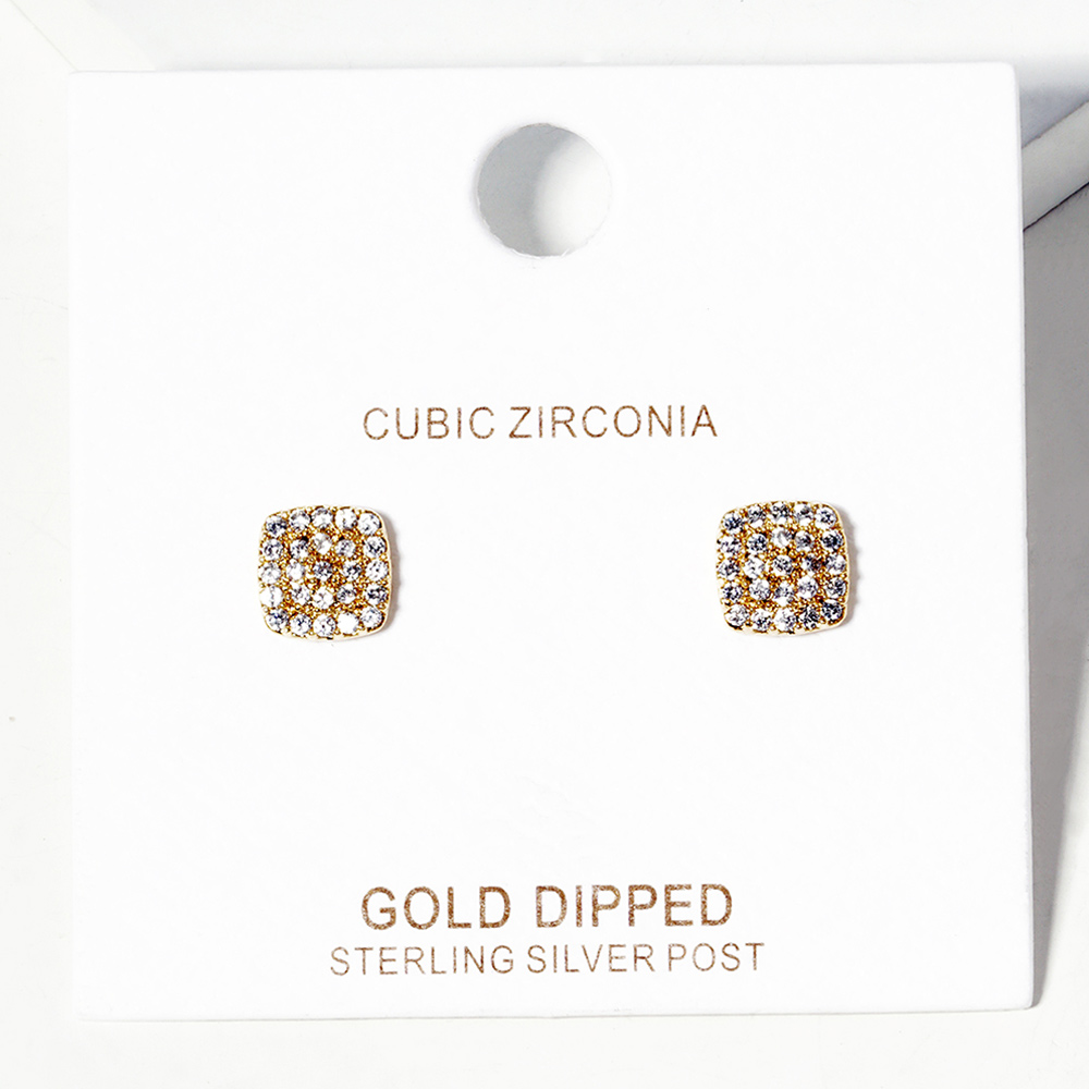 Gold Dipped CZ Stone Paved Square Stud Earrings