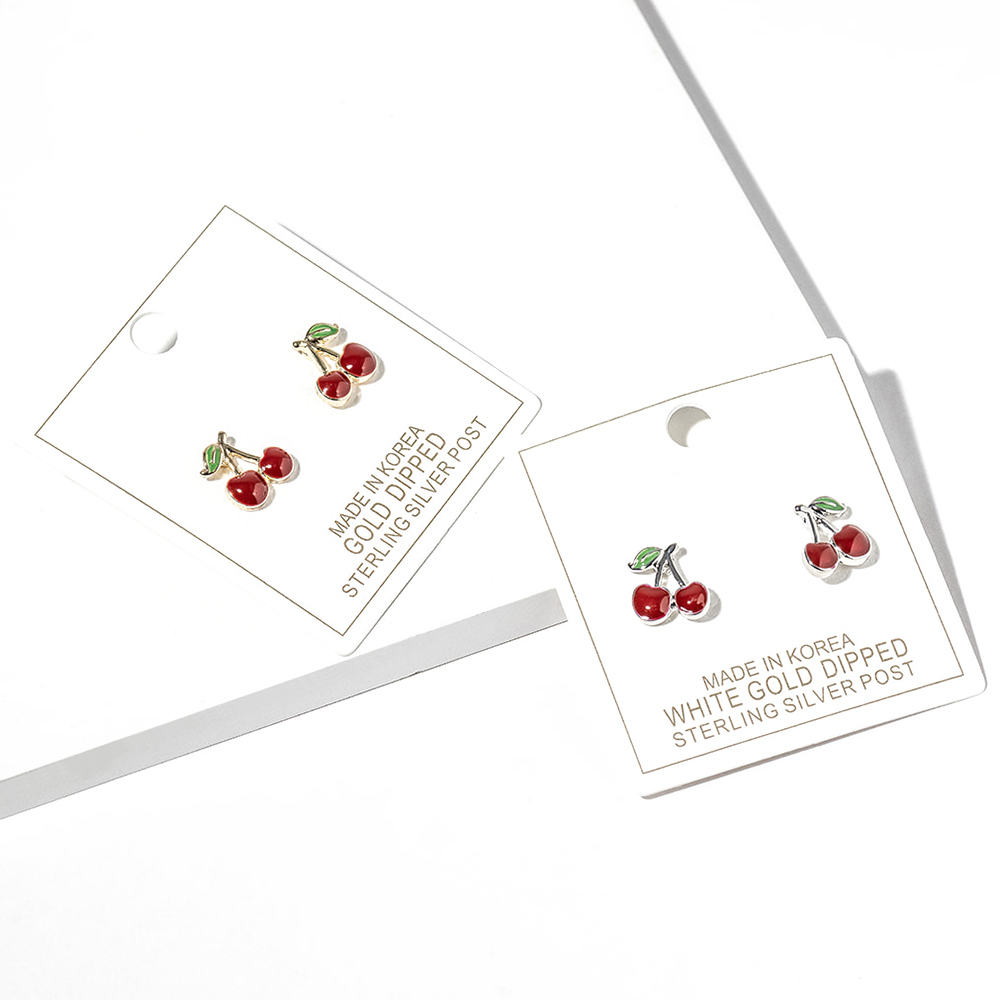 Details • Size : 0.5" X 0.5" • Adorable cherry stud earrings featuring a playful fruit design with gold dipped sterling silver posts. Perfect for adding a fun and stylish touch to any outfit, these cute earrings bring a youthful charm and modern flair, making them ideal for everyday wear or gifting. • Gold Dipped • Lead and Nickel Compliant • Sterling Silver Post